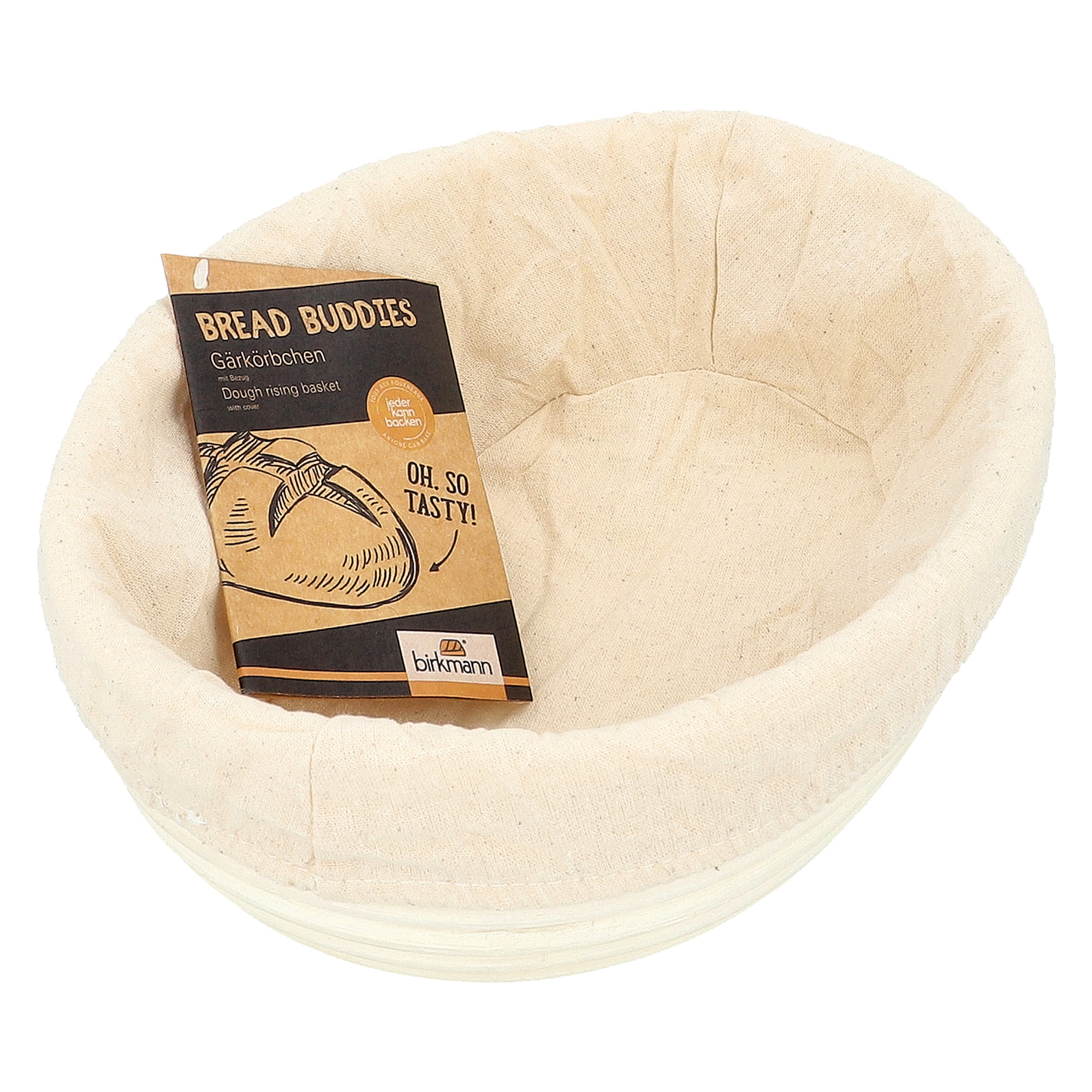 Birkmann Jäskorg Oval Med Bomullsduk 24,5 x 18,5 cm i naturlig rotting och bomull – ger fint mönster, stödjer degen under jäsning och bevarar fukt med lock. Tål inte maskindisk; borsta ren och använd gärna eftervärmen i ugnen. Perfekt för luftigt, rustikt bröd.