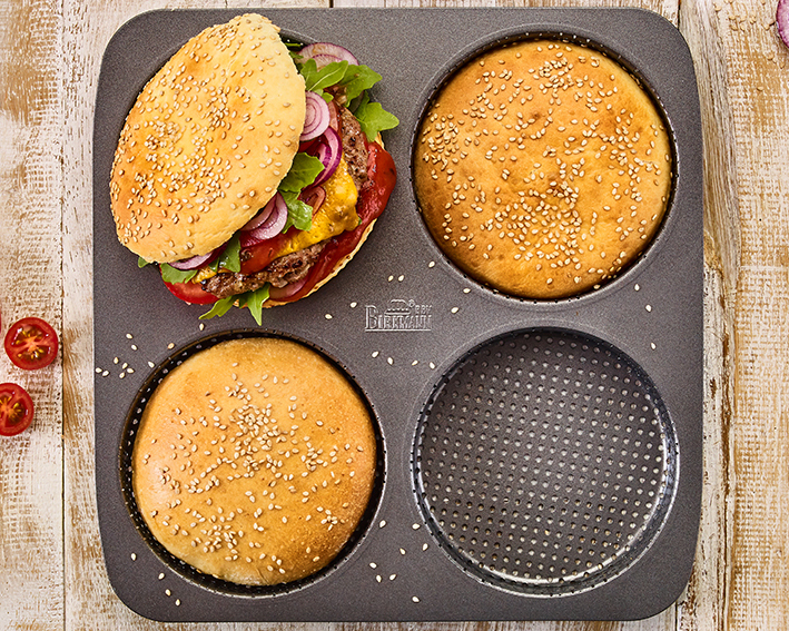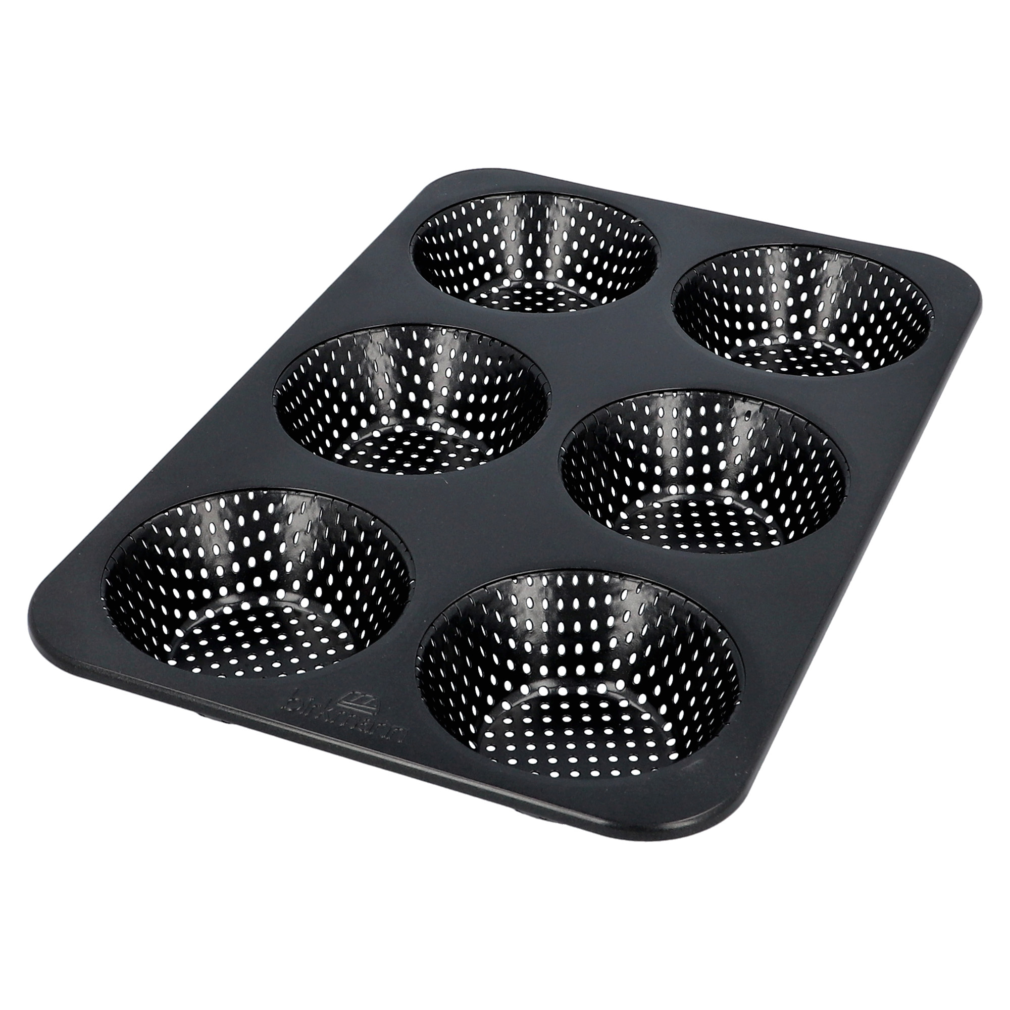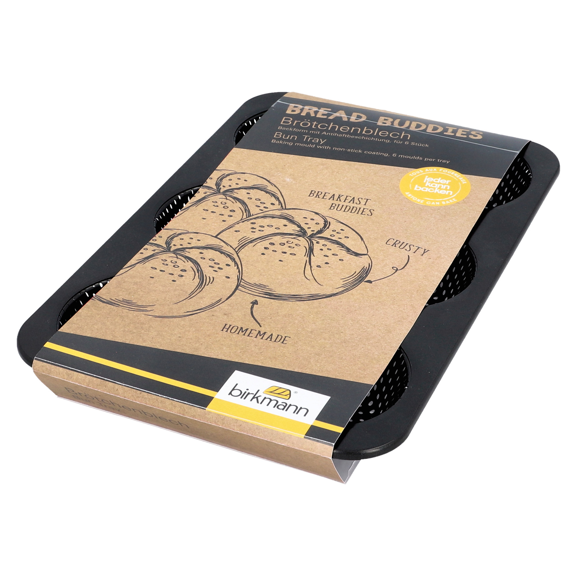 Birkmann Plåt Hamburgebröd Perforerad 6 st i kolstål med non-stick-beläggning. De små hålen i formen släpper igenom luft och fukt, vilket ger ett extra frasigt och jämnt gräddat resultat. Enkel att rengöra och perfekt för hembakade baguetter med fin skorpa.
