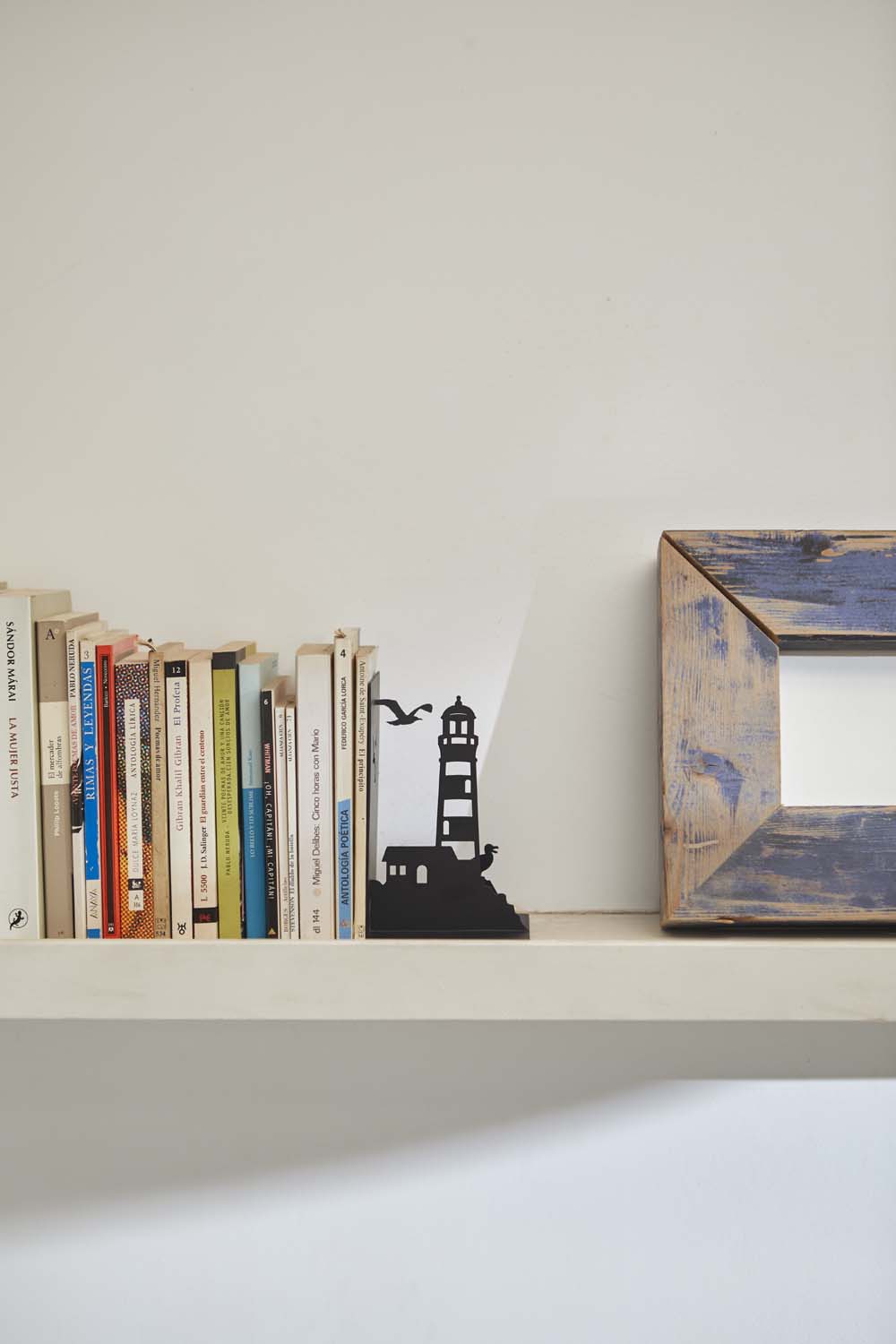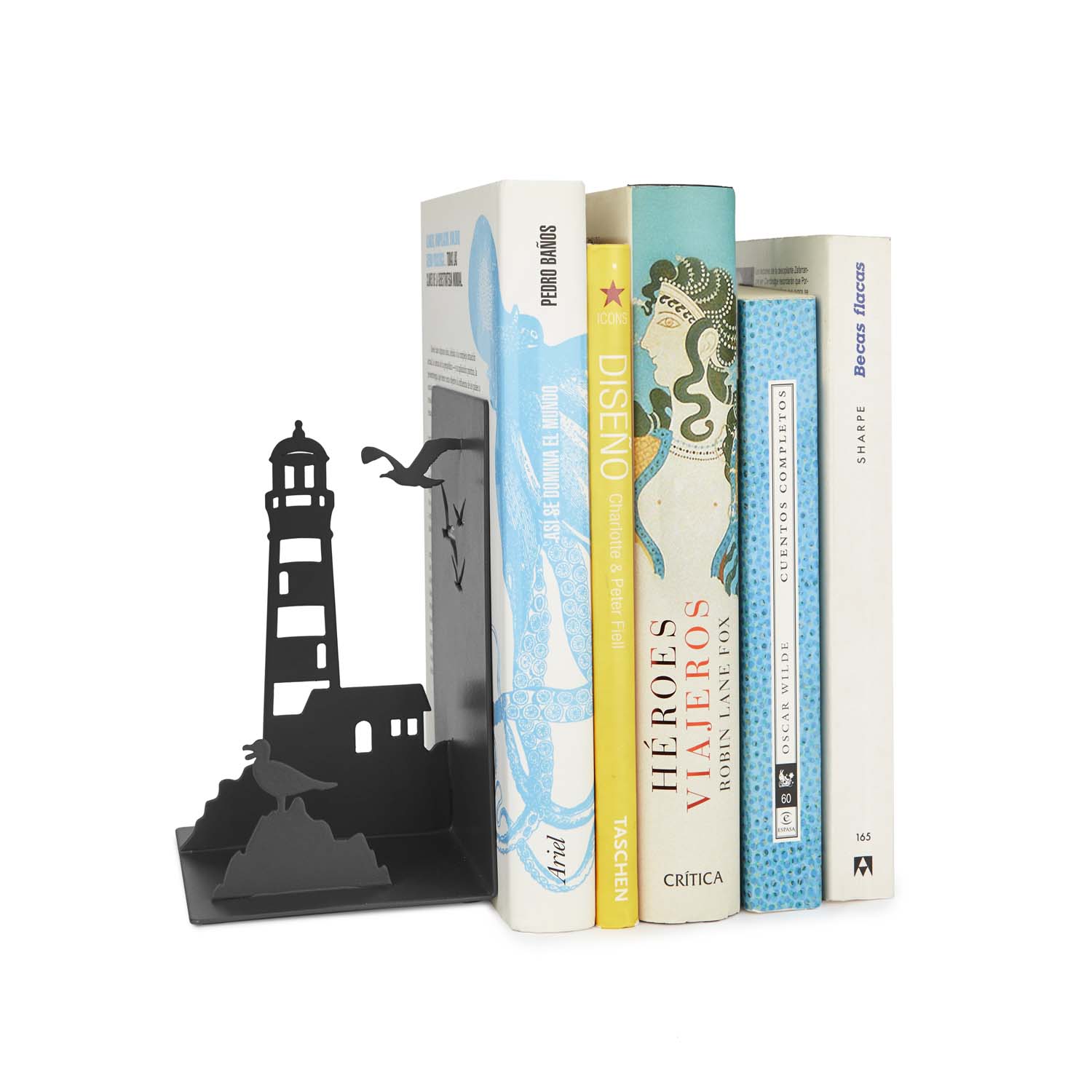 Bookend Lighthouse ger en klassisk utsikt över kusten: fyr och måsar Tillverkad av metall för extra styrka. Inkluderar halksäkra stödpunkter. Skyddar dina böcker från att ramla och organiserar dem på hyllan, i sovrummet eller på kontoret. Den perfekta presenten För marina entusiaster, dykare eller hobbyister är den idealisk för att hålla dina böcker prydliga och fria från att ramla ut! Originaldesign. Bokslutet som simulerar en klassisk kustvy, med en fyr och måsar. Mått: 16x10x10 cm Material: metall - Designat av: Balvi