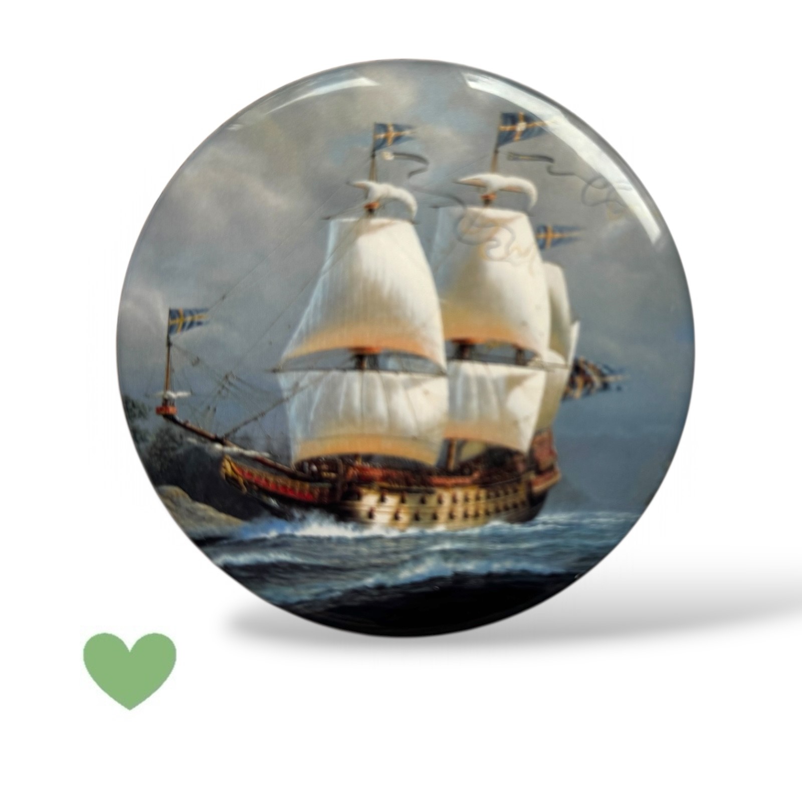 Coastermagnet, rund 80mmØ trä och klar hartslins