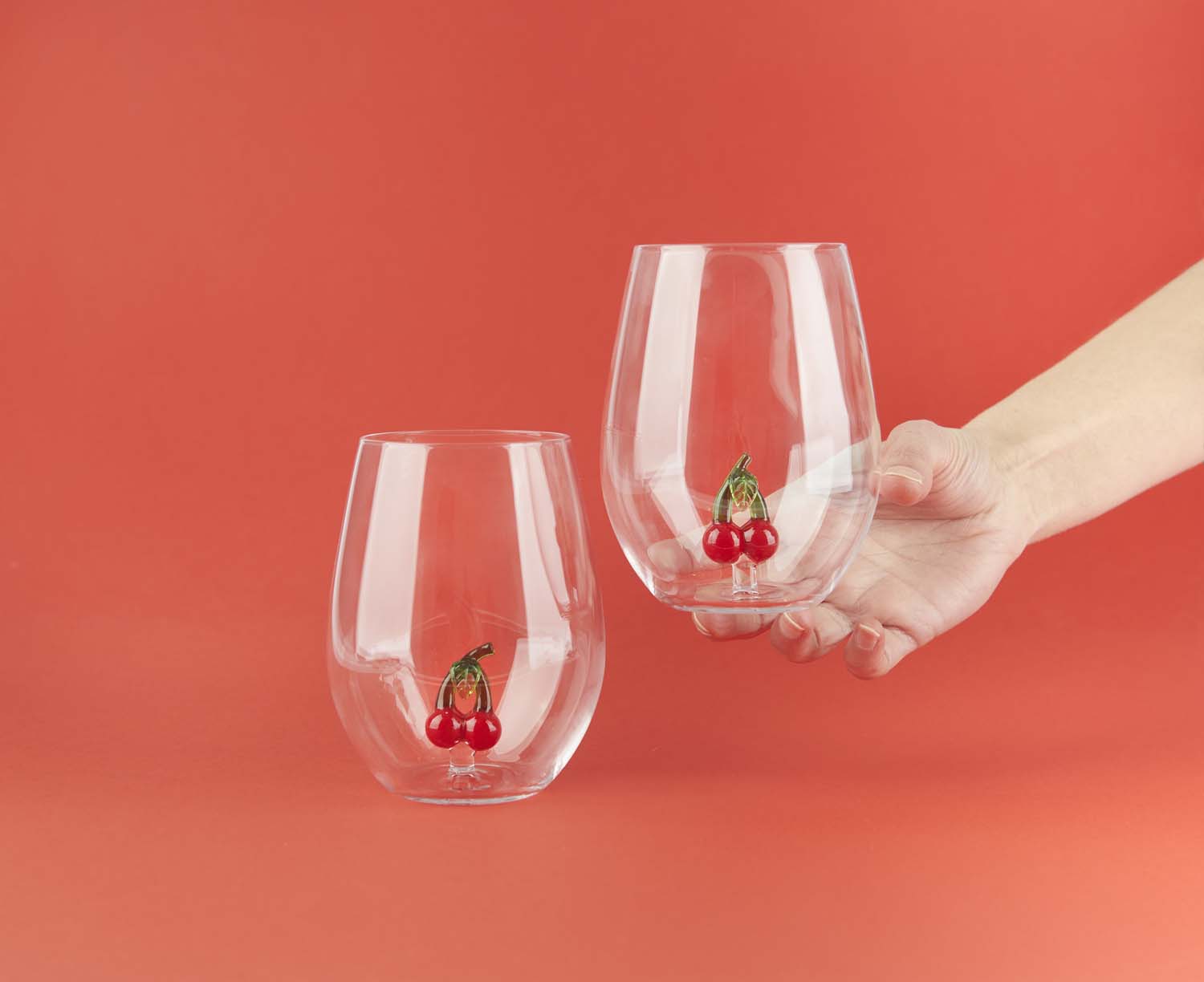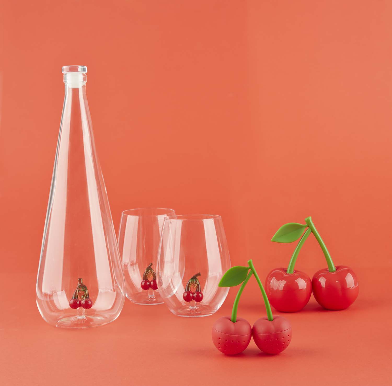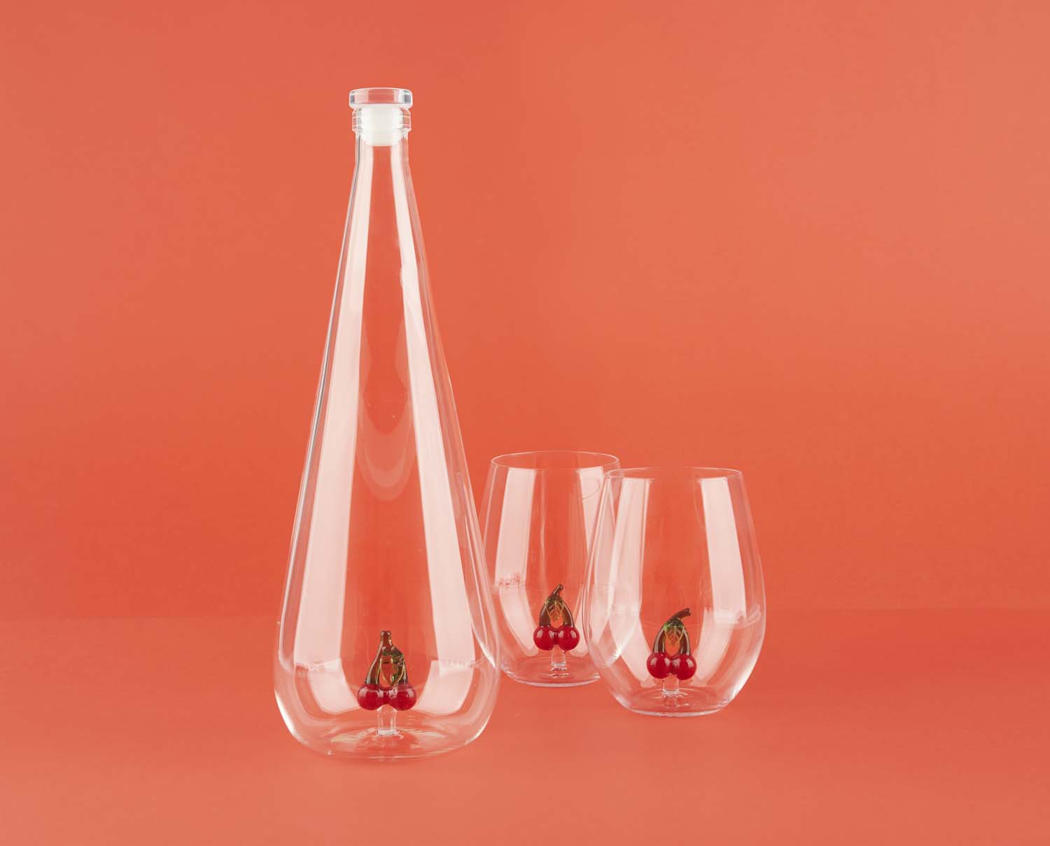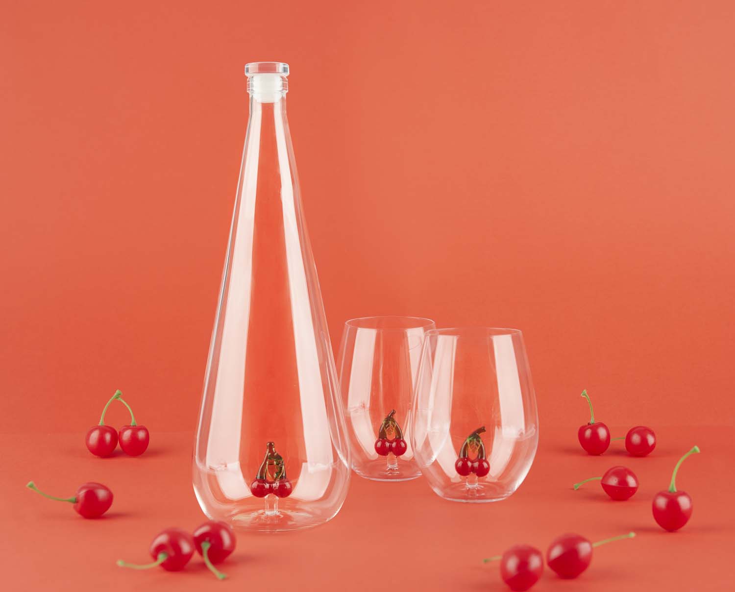 Dricksglas Botanical Körsbär Varje glas innehåller en handgjord körsbärsfigur; Varje del är unik. En visuell detalj som omedelbart fångar ögat. Passar perfekt med den matchande flaskan. Set med två glas på 500 ml vardera, idealiskt för dagligt bruk eller för att överraska dina gäster. Tillverkad av slitstarkt borosilikatglas, med en handgjord dekor inutisom gör varje föremål unikt. För att bevara detaljerna, undvik diskmaskin, rengör för hand. En unik presentidé för fruktälskare, älskare av smaksatt vatten eller all som gillar unik design. Mått: 12x9,2x9,2 cm Material: glas - Designad av: Balvi