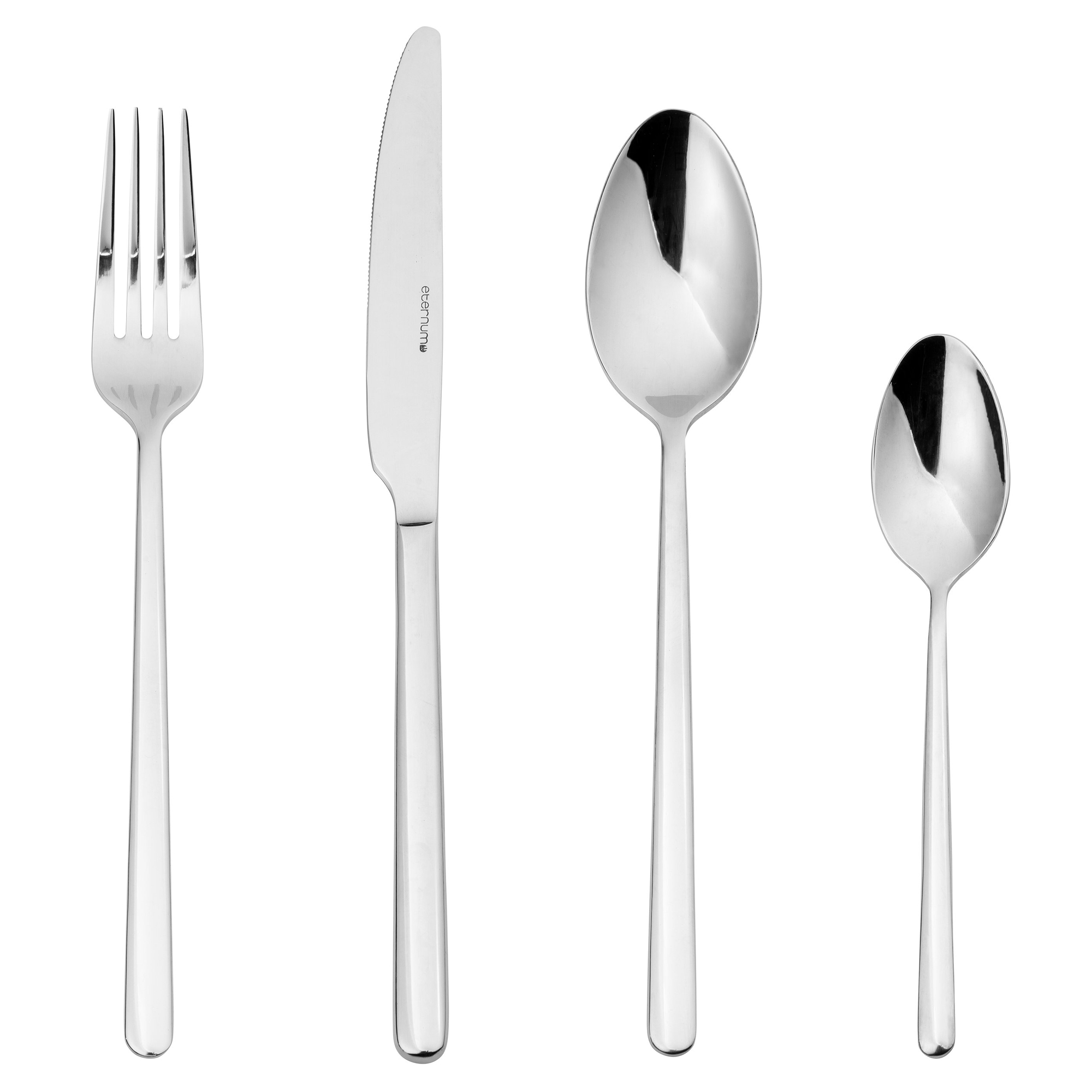 Mångsidig bestickserie från klassiska Eternum. I paketet ingår fyra vardera av kniv, gaffel, matsked och tesked. Besticken är i blankt rostfritt stål 18/0 med tjocklek 2,5 mm.