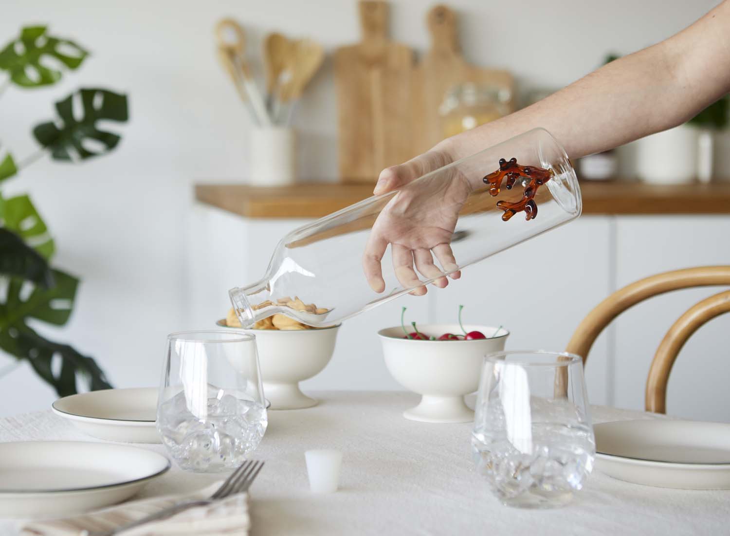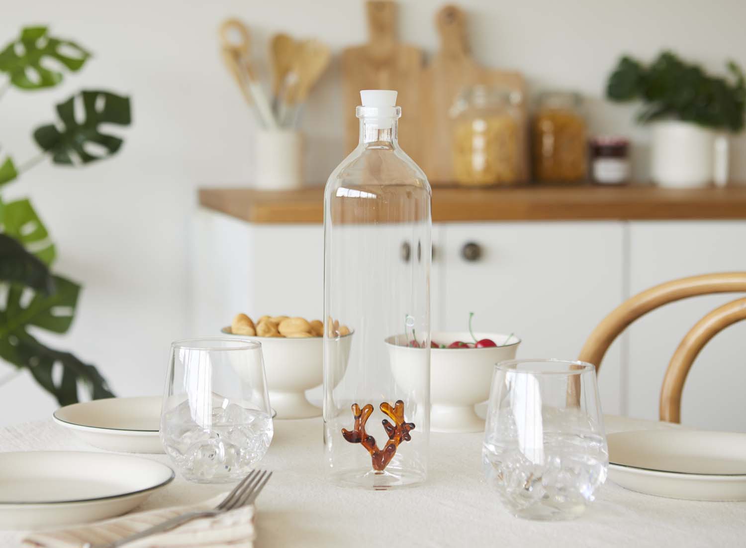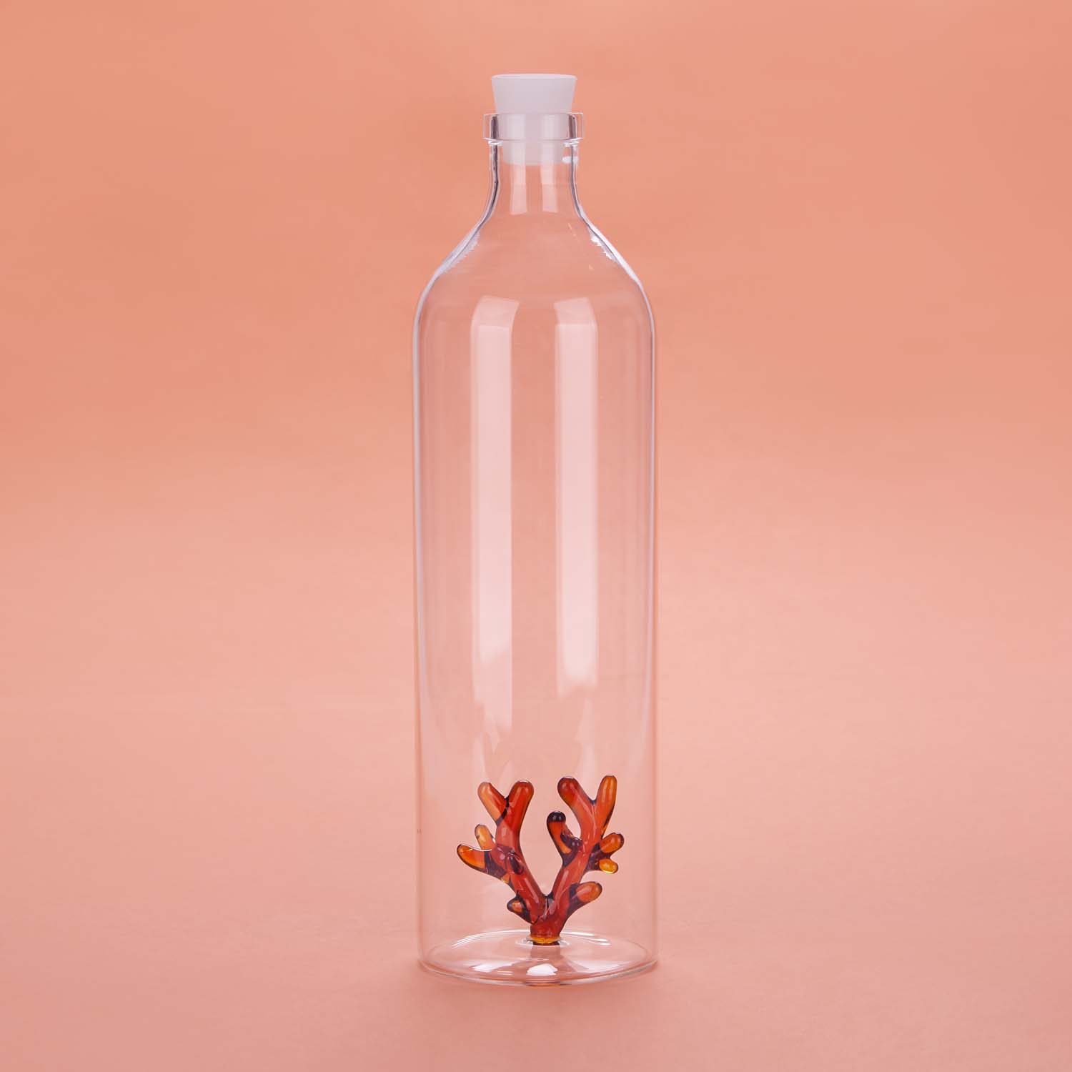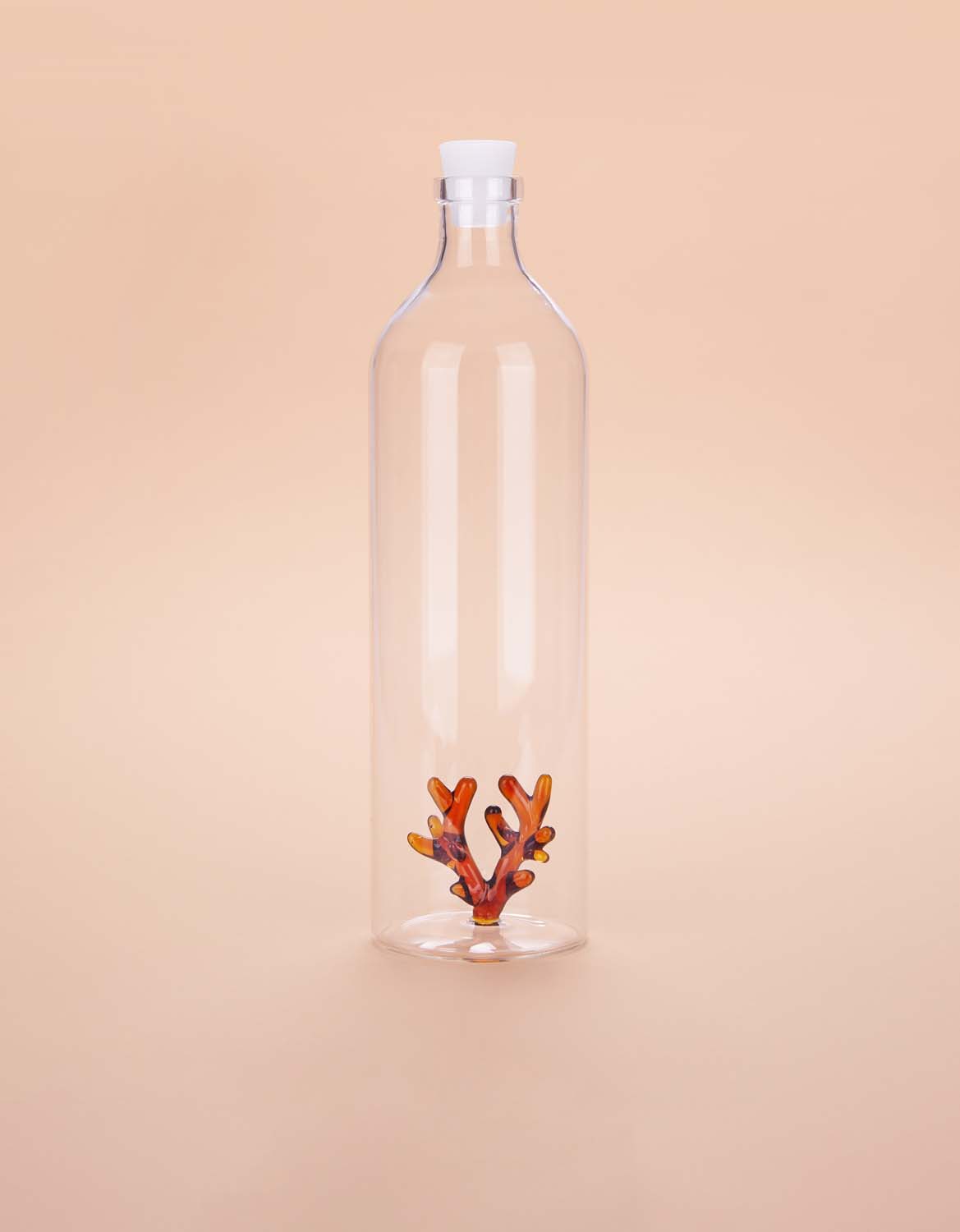 Bottle with amber colored Coral inside. A decoartive marine figure. Bottle for water. Put it in the refrigerator to keep the water fresh at all times. You can keep it in sight, its design will give your home an original touch. Manufactured in Borosilicate, a lasting glass chosen for its caloric and chemical resistance. Do not wash in the dishwasher. A perfect gift for marine world lovers.Ideal for birthdays, Secret Santa, Christmas and other celebrations. Dimensions: 30x8,5x8,5 cm Material: borosilicate - Designed by: Balvi