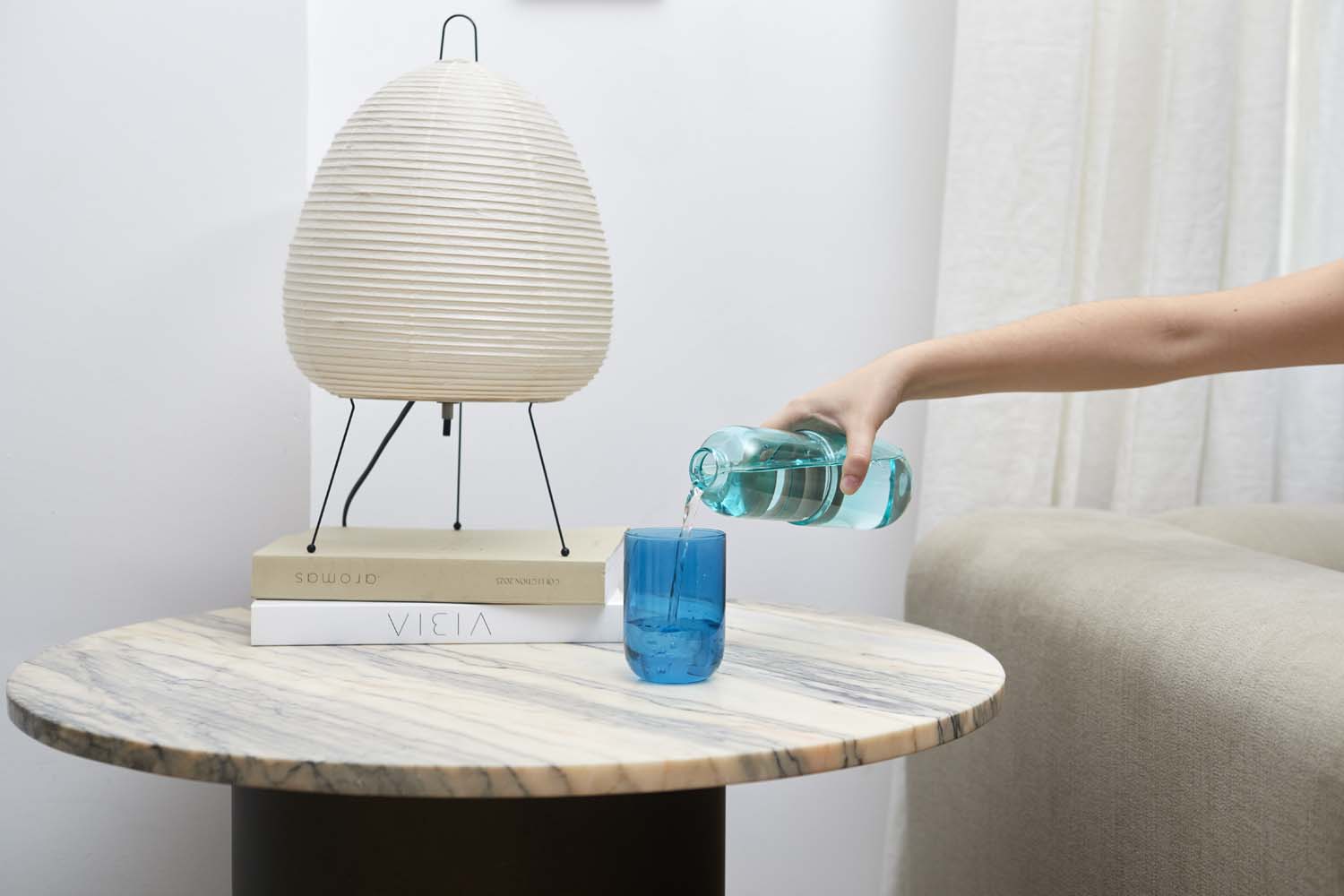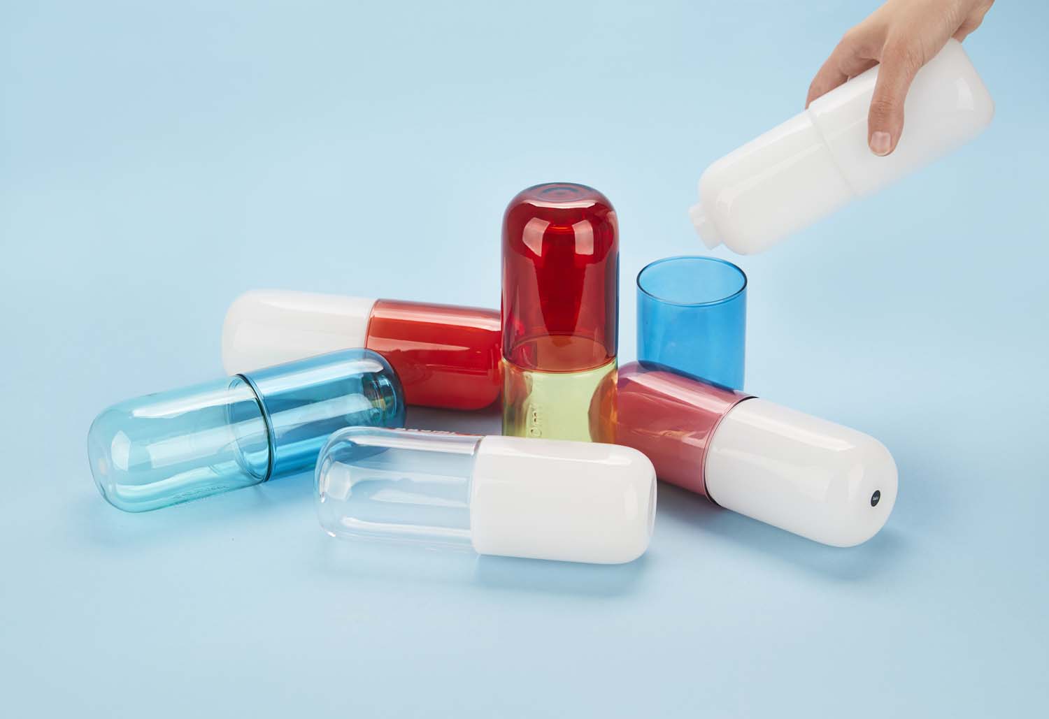 Ett Piller för att släcka din törst , Flaska och Glas Överraskningseffekt: Det som ser ut som ett gigantisk piller döljer faktiskt en blå flaska med en matchande blå kopp. En oväntad design som både gläder och roar från första stund. Med en kapacitet på 550 ml hjälper denna flaska dig att hålla dig hydrerad med stil. Den är kylskåpssäker och har ett smidigt lock, så den kan tas med var som helst – från skrivbordet till nattduksbordet. Tillverkad av robust borosilikatglas. För att hålla längre rekommenderas handtvätt. Perfekt present: Perfekt för dem som söker något utöver det vanliga, praktiska och stilfulla. Mått: 19,8x7x7 cm Material: glas - Designat av: Balvi
