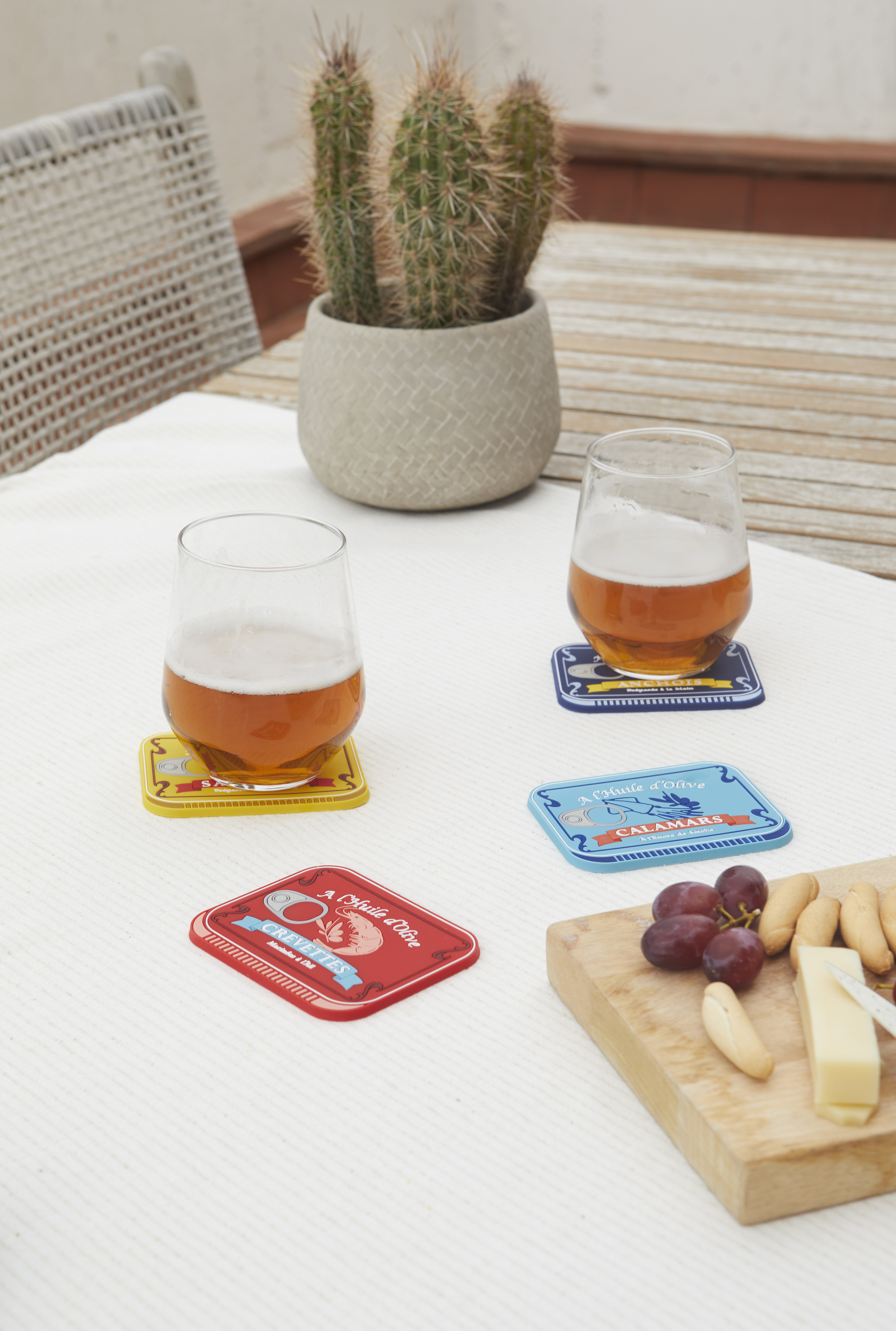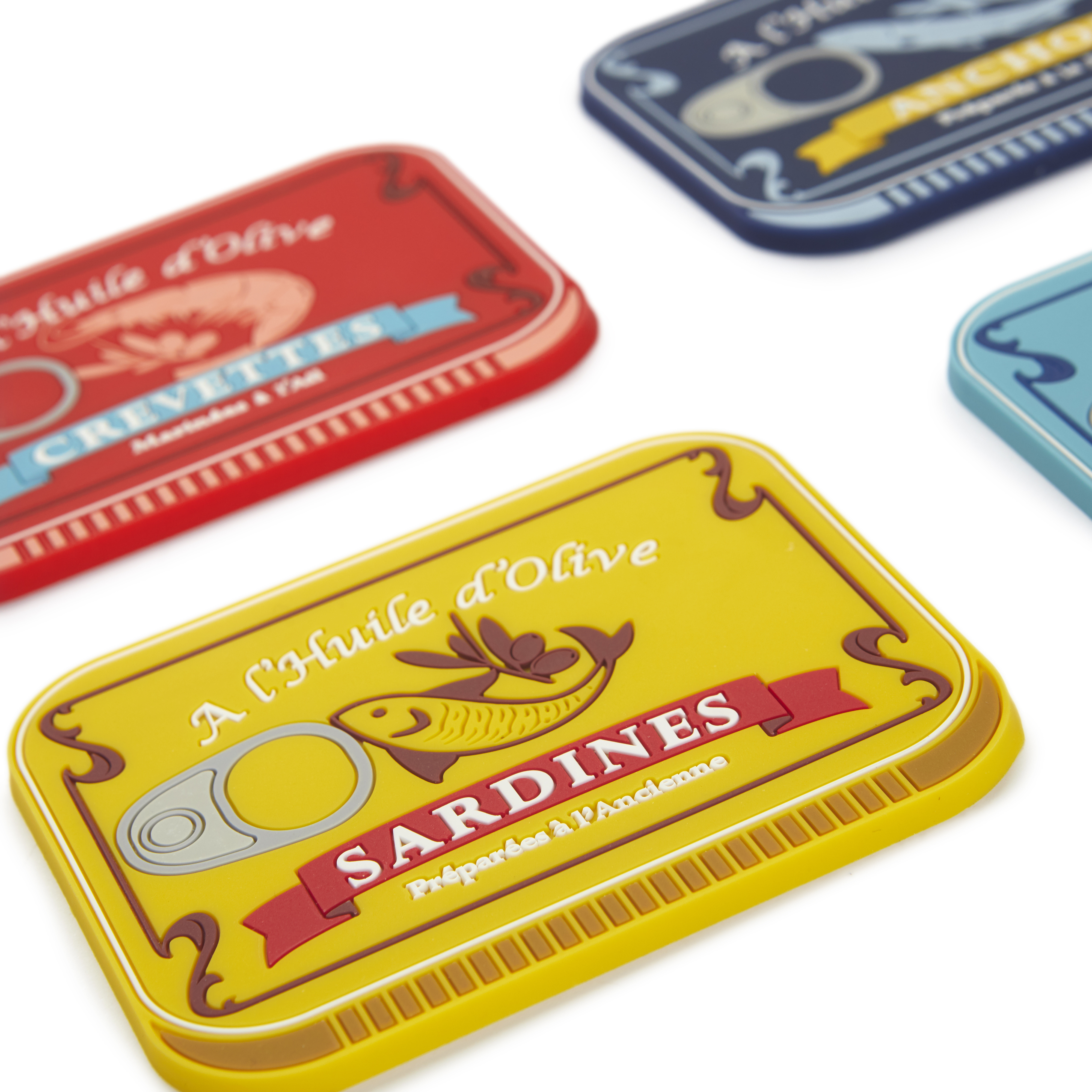 Balvi Coasters Conserverie Retro design av 4 konserver ORIGINAL DESIGN. Retro och rolig design som simulerar 4 burkar konserver: sardiner, bläckfisk, ansjovis och räkor. PERFEKT NÄRVARANDE. Perfekt för dem som älskar aptitretare, konserver eller havet. SAMMANSÄTTNING. Tillverkad av mjuk plast. Lätt att rengöra och hygienisk, samt behaglig att ta på. Tål diskmaskin. PRAKTISK. Skydda och håll ytorna rena med dessa glasunderlägg. De är halksäkra. Mått: 0,4x9,8x8 cm Material: plast - Designad av: Balvi