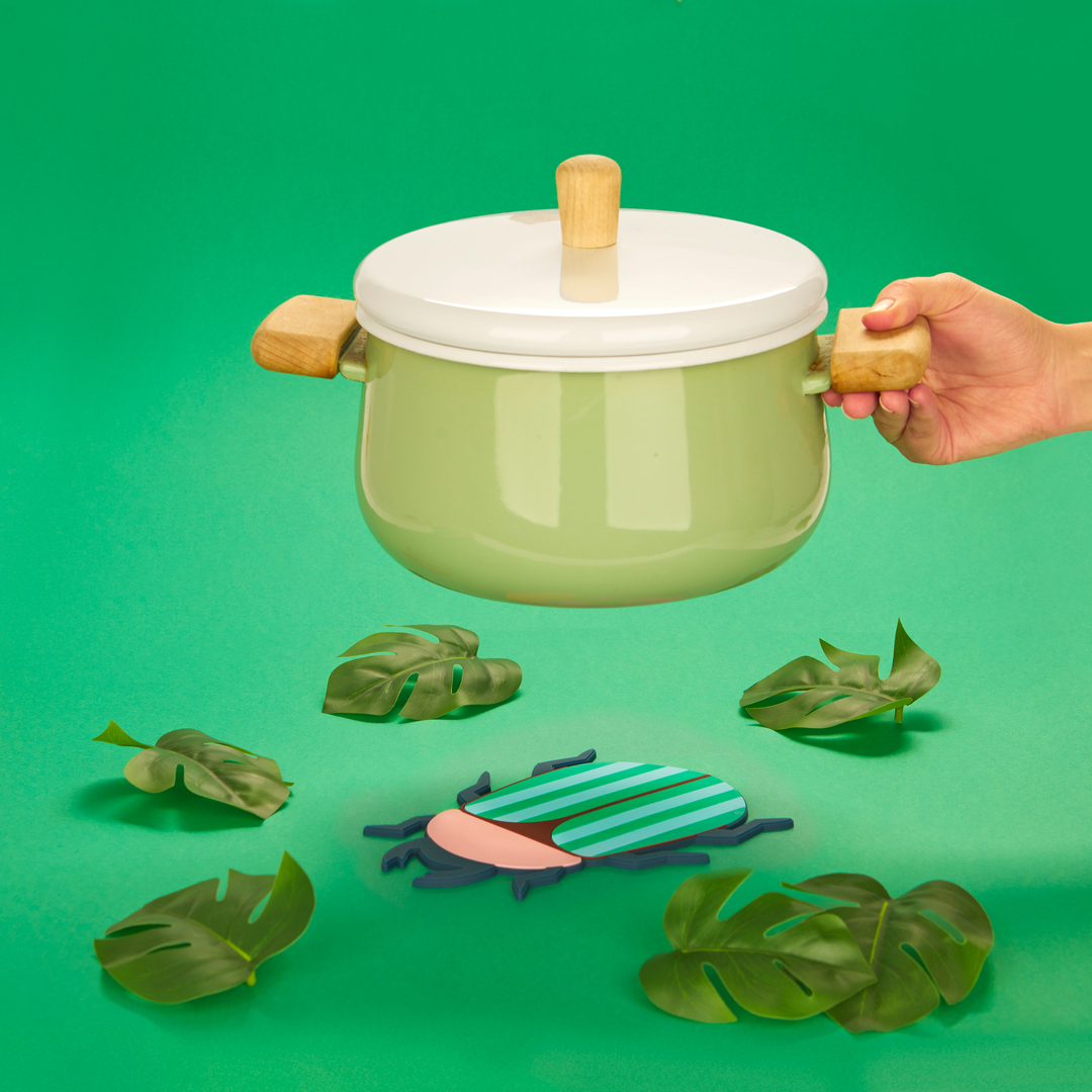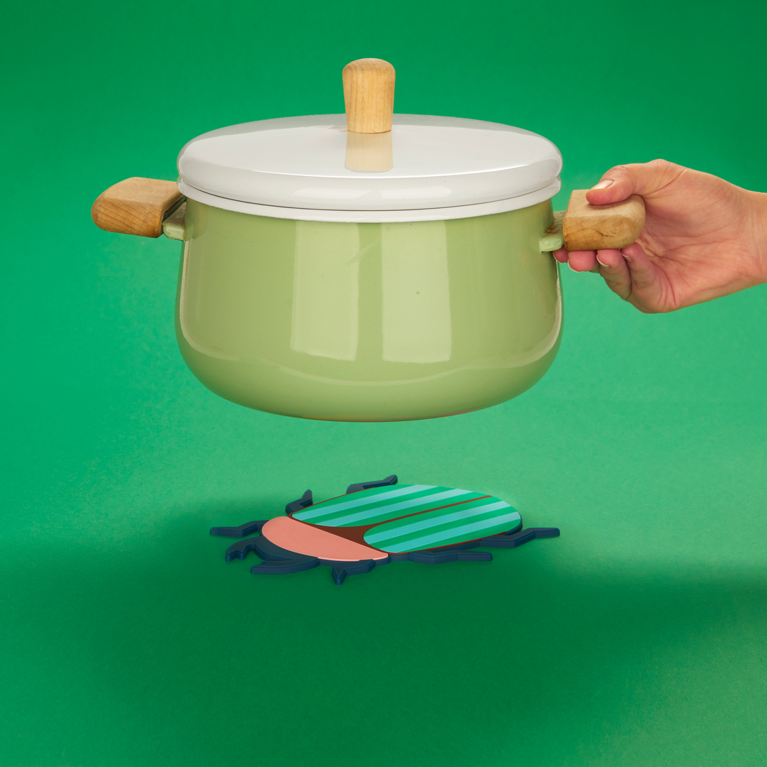 Balvi, Grytunderlägg, Skalbaggarna, Färgglada och halkfria buggar. PRAKTISK. Skydda dina dukar och ytor från heta behållare. ROLIG DESIGN. Detta färgglada skalbaggsformade grytunderlägg skyddar dina ytor samtidigt som det ger en glad och unik touch till ditt bord eller kök. MOTSTÅNDSKRAFTIG. Tål temperaturer upp till 100ºC. Torka av med en fuktig trasa. PERFEKT NÄRVARANDE. Perfekt för insektsälskare, naturentusiaster eller alla som gillar kökstillbehör med en kreativ twist. Mått: 0,4x19x15 cm Material: plast - Designad av: Balvi