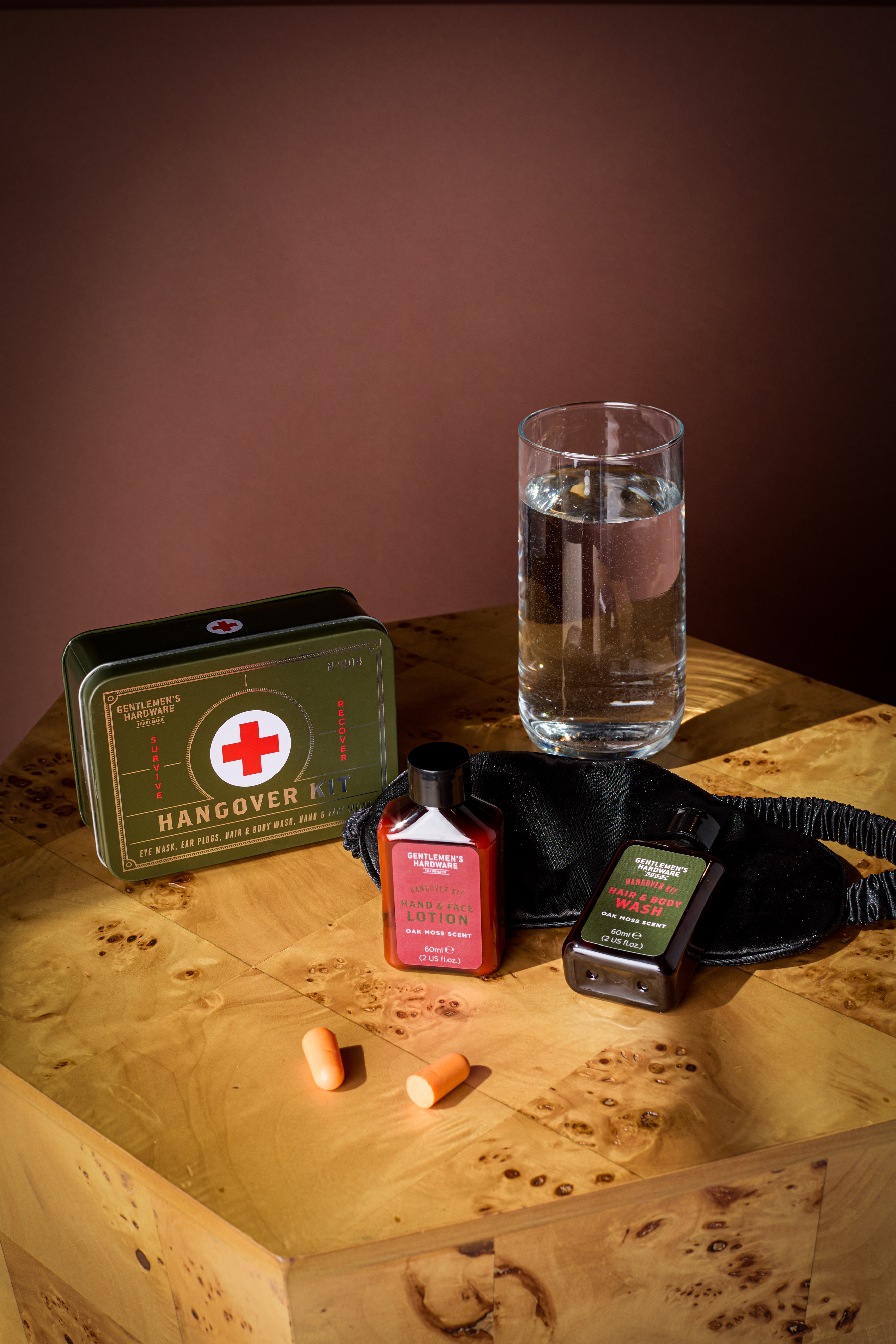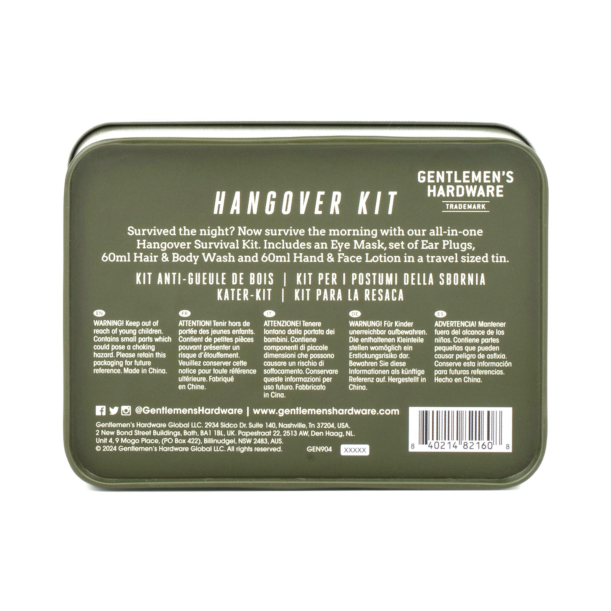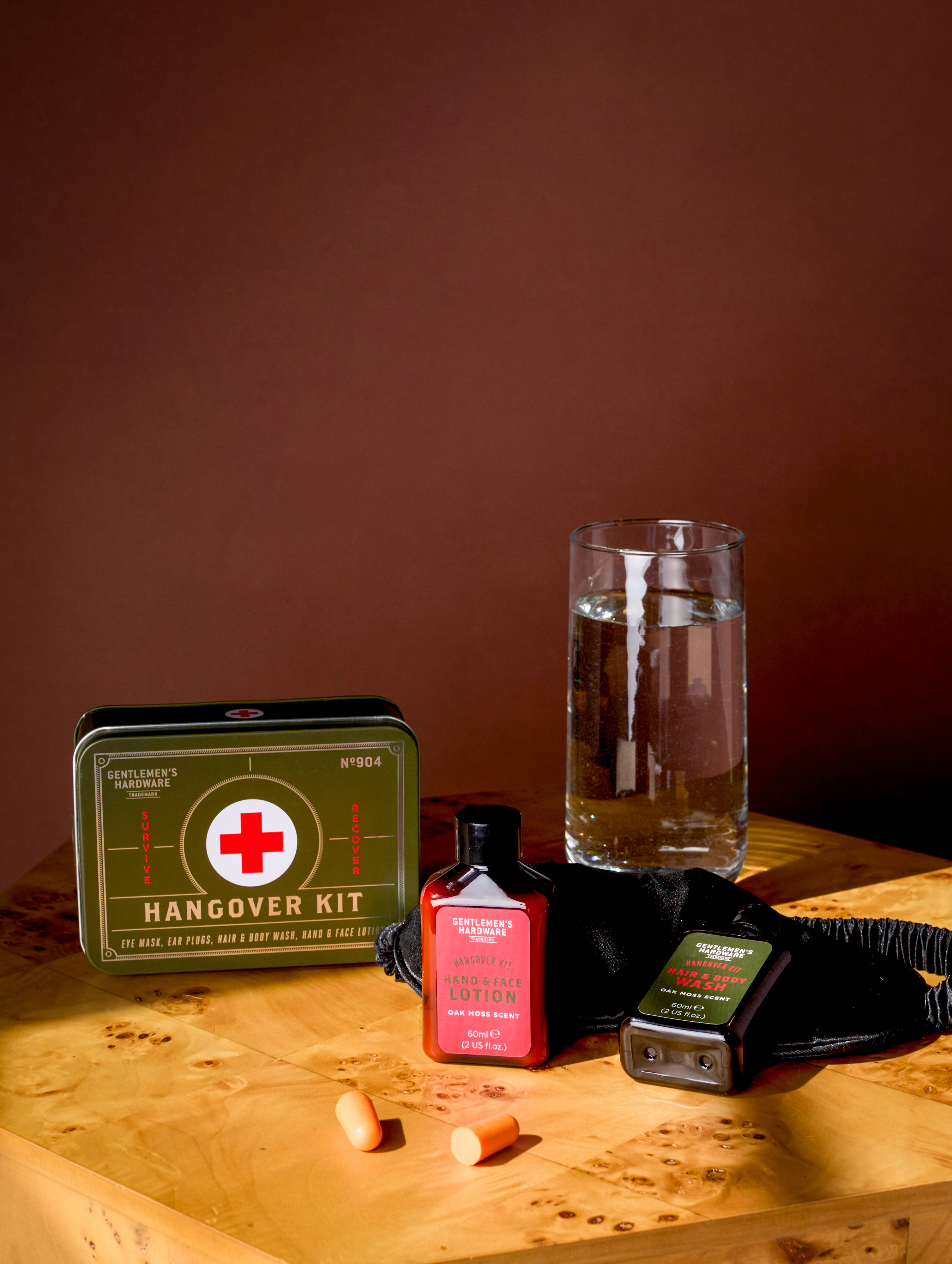 Har du överlevt natten? Överlev nu morgonen med vår allt-i-ett-skrivare Överlevnadskit för baksmälla. Inkluderar en ögonmask, en uppsättning öronproppar, 60 ml hår- och kroppstvätt och 60 ml hand- och ansiktslotion i en reseförpackning.
