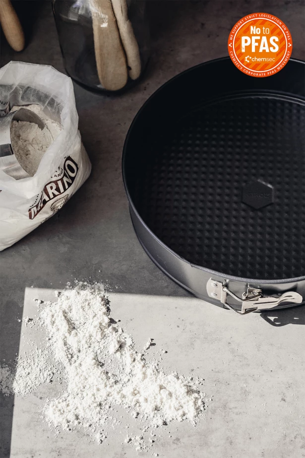 Heirol springform med non-stick beläggning. Denna form är 24 cm i diameter, höjd 7 cm och rymmer 2,8 l. Fri från PFOA och PFFE.