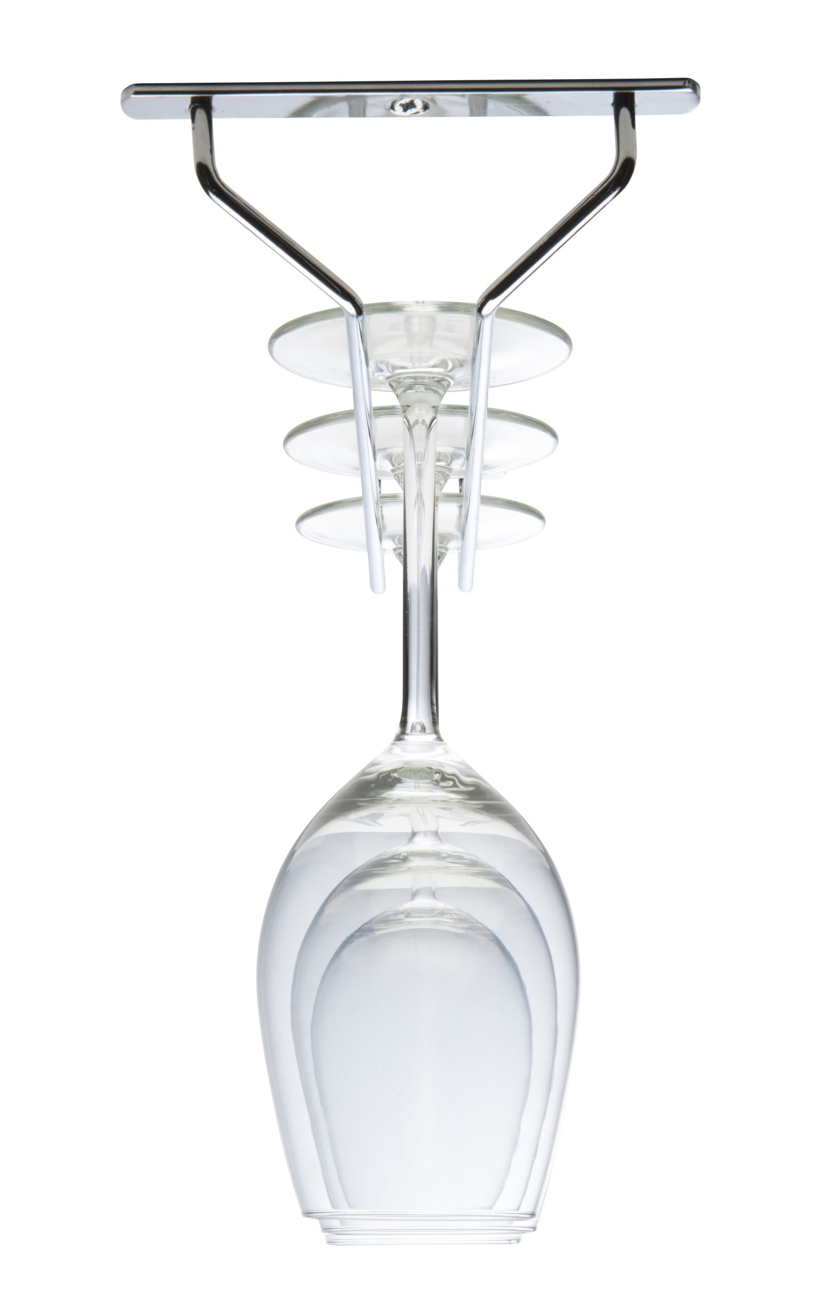 Glashängare i klassisk barmodell som fästs i tak eller under ett köksskåp. Hängaren har ett spår och är 34 cm djup. Färg: Krom