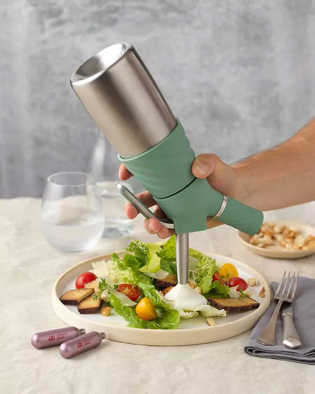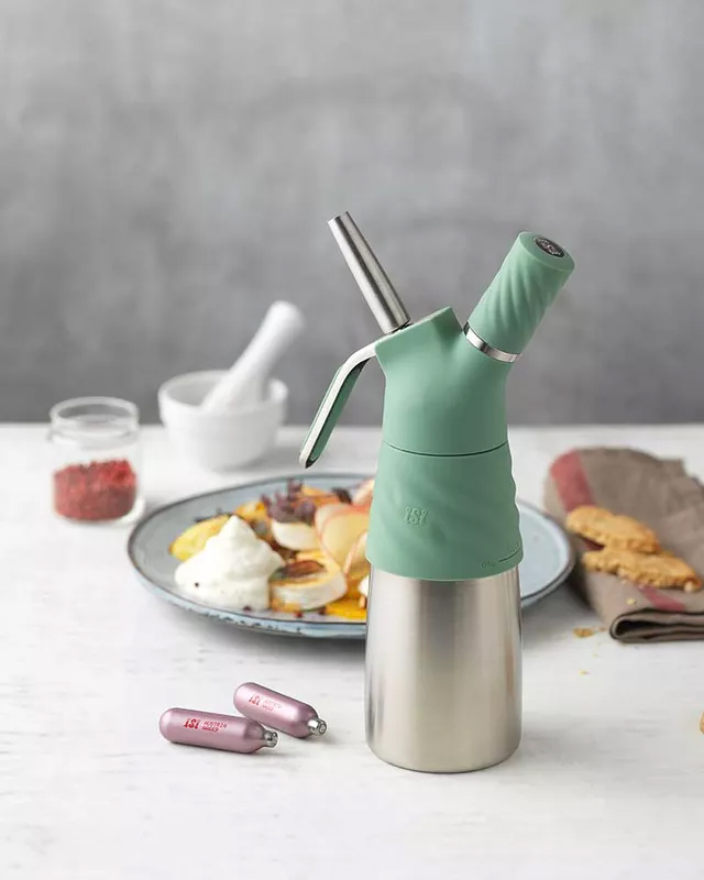 Den här sifonen är din bästa kompanjon för otroliga smakupplevelser och uppläggningar i en prisbelönad lyxig design. Tack vare iSi’s avancerade teknologi är det en barnlek att skapa fluffiga mousser, läckra toppingar, krämig vispgrädde, frestande bakverk och oemotståndliga såser – allt med ett knapptryck. Sifonen lämpar sig endast för kall användning.