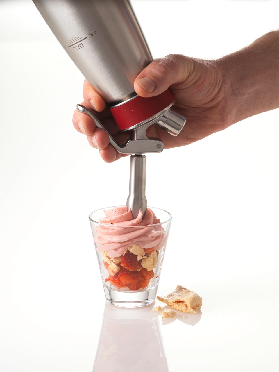 Sifon för kommersiellt bruk från iSi. Sifonen kan användas till såväl grädde och desserter som till såser och soppor. Produkten är tillverkad i rostfritt stål med grepp i silikon. Mycket enkel att använda och rengöra. Till sifonen medföljer även rak, tulpan- samt stjärntyll. Rymmer ,5 liter.