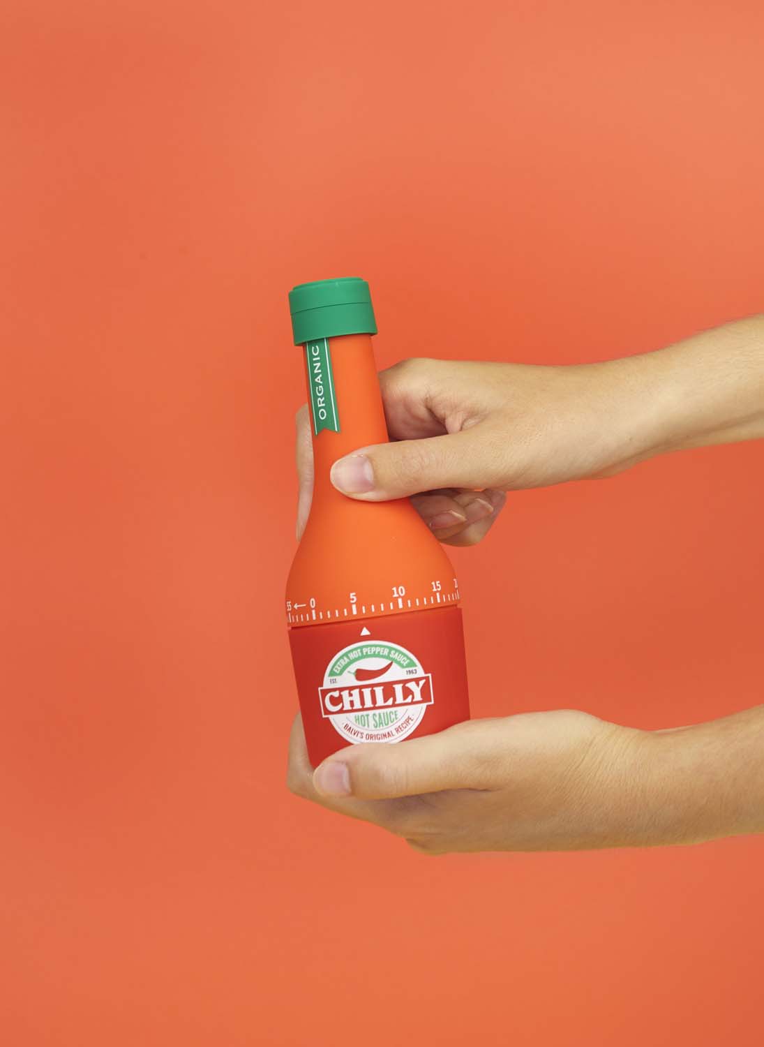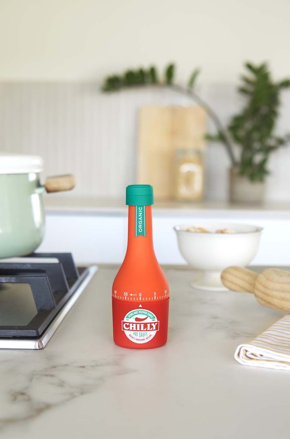 Smart kökstimer formad som flaska Hot Sauce Dekorativt. Ser ut som en het såsflaska, men det är faktiskt en kökstimer! Originell, praktisk och redo att tillföra roligt och stil till ditt rum medan du håller koll på dina recept. Perfekt present – Perfekt för dem som älskar att prova nya recept, matlagningsentusiaster, kryddmatälskare eller alla som gillar att lägga till en rolig, originell touch i sin inredning. Lätt att använda. Ställ in tiden helt enkelt genom att vrida på ratten (max 1 timme). Lätt att rengöra med en fuktig trasa. Mekanisk drift – inga batterier behövs. Viktigt: För att maximera varaktigheten på alarmljudet rekommenderas att ge det ett helt varv (upp till 59 minuter) medurs och sedan tillbaka till önskad tid. Mått: 16x5,8x5,8 cm Material: plast - Designad av: Balvi