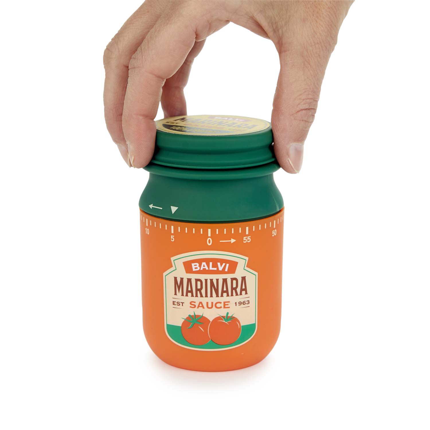 Kökstimer Marinara-sås Det kan se ut som en burk, men det är faktiskt en kökstimer! Dess realistiska design ger din plats en retro och unik känsla, samtidigt som den hjälper dig med dina matlagningskreationer. Den perfekta presenten för matälskare, retroentusiaster eller älskare av marinarasås. Ställ in tiden genom att helt enkelt vrida på ratten (max 1 timme). Rengör lätt med en fuktig trasa. Mekanisk design, inga batterier behövs. Viktigt: För att maximera varaktigheten på alarmljudet rekommenderas att ge det ett helt varv (upp till 59 minuter) medurs och sedan tillbaka till önskad tid. Mått: 10x5,5x5,5 cm Material: plast - Designad av: Balvi