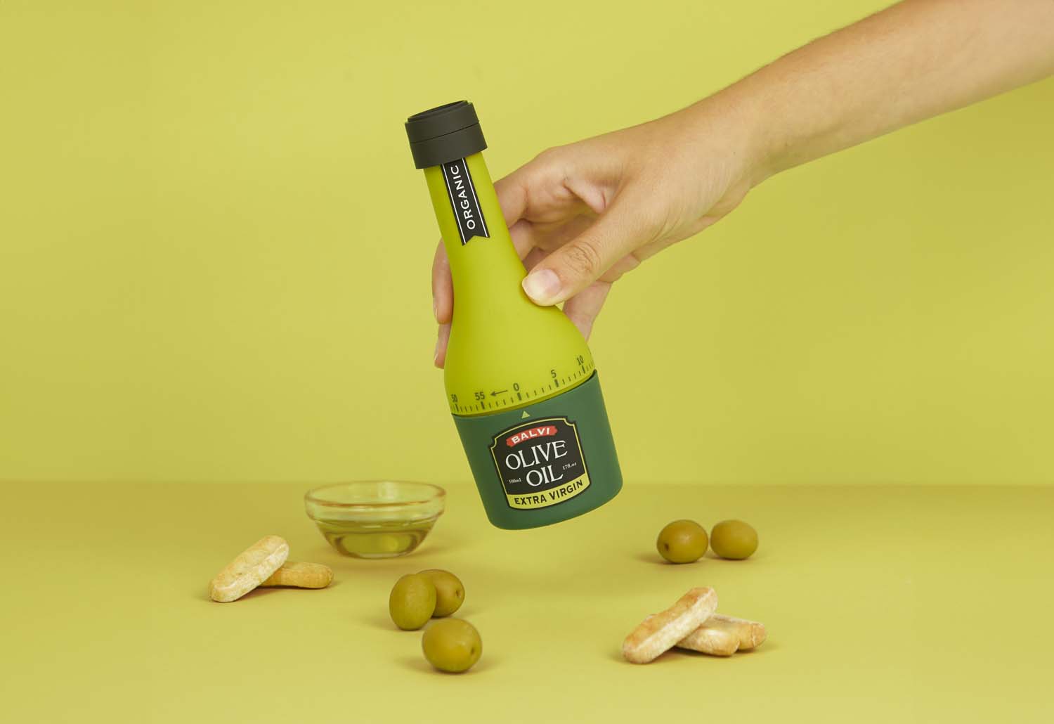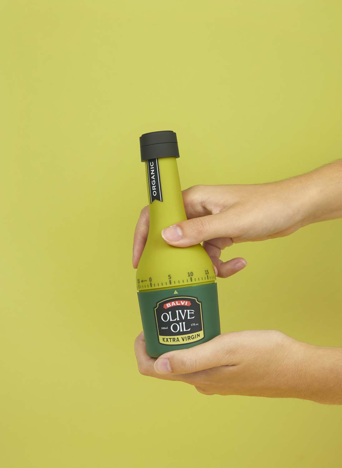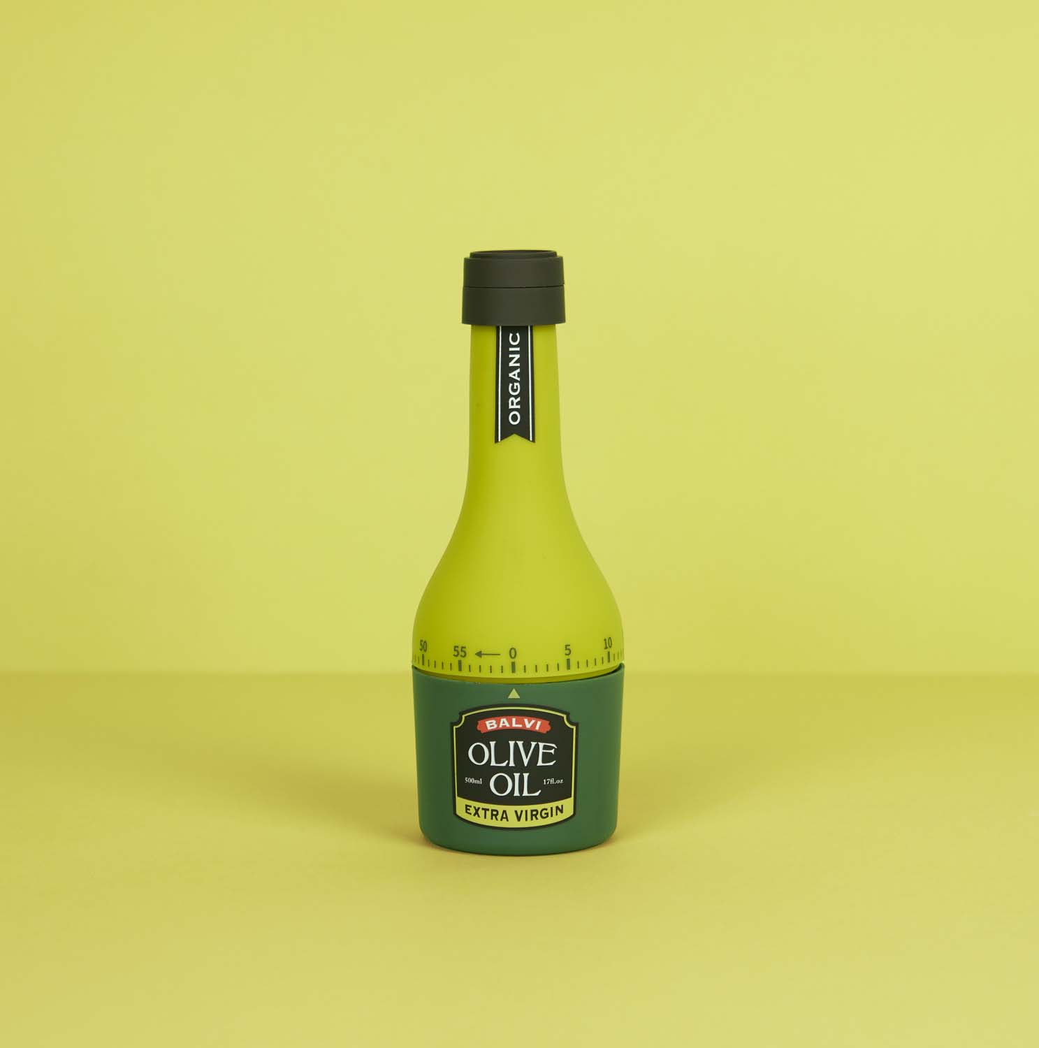 Smart kökstimer formad som en olivoljflaska Dekorativt. Det ser ut som en olivoljeflaska, men det är egentligen en kökstimer! Originell, praktisk och redo att tillföra roligt och stil till ditt rum medan du håller koll på dina recept. Perfekt present. Perfekt för dem som gillar att prova nya recept, älskar medelhavssmaker eller alla som uppskattar en elegant men lekfull touch i köket. Lätt att använda. Ställ in tiden helt enkelt genom att vrida på ratten (max 1 timme). Lätt att rengöra med en fuktig trasa. Mekanisk drift – inga batterier behövs. Viktigt: För att maximera varaktigheten på alarmljudet rekommenderas att ge det ett helt varv (upp till 59 minuter) medurs och sedan tillbaka till önskad tid. Mått: 16x5,8x5,8 cm Material: plast - Designad av: Balvi