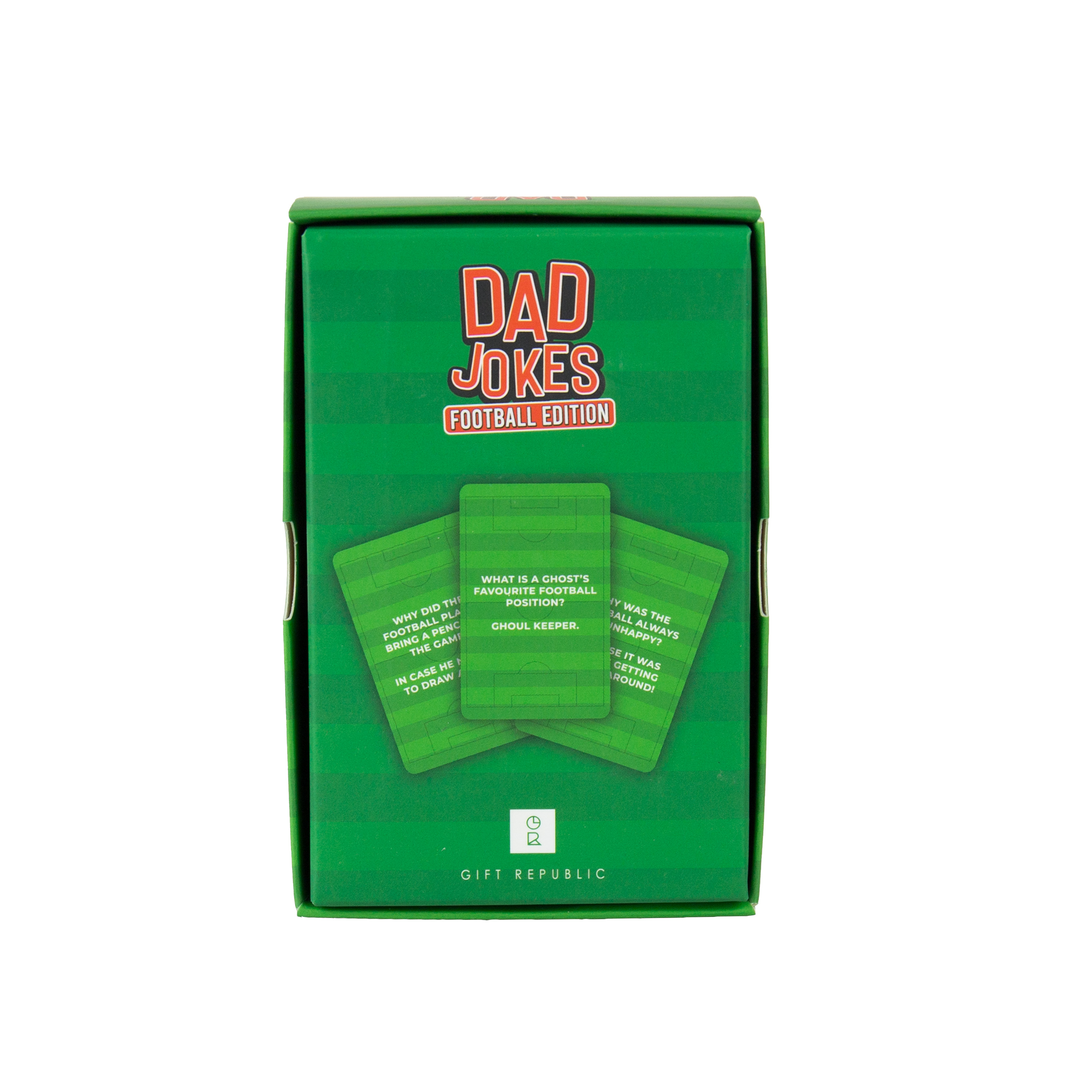 Få dig många skratt med det här perfekta paketet med pappaskämt med fotbollstema. Från fräcka ordvitsar med röda kort till målvärda skämt, det här setet är En riktig vinnare för fans av det vackra spelet. 100 kort