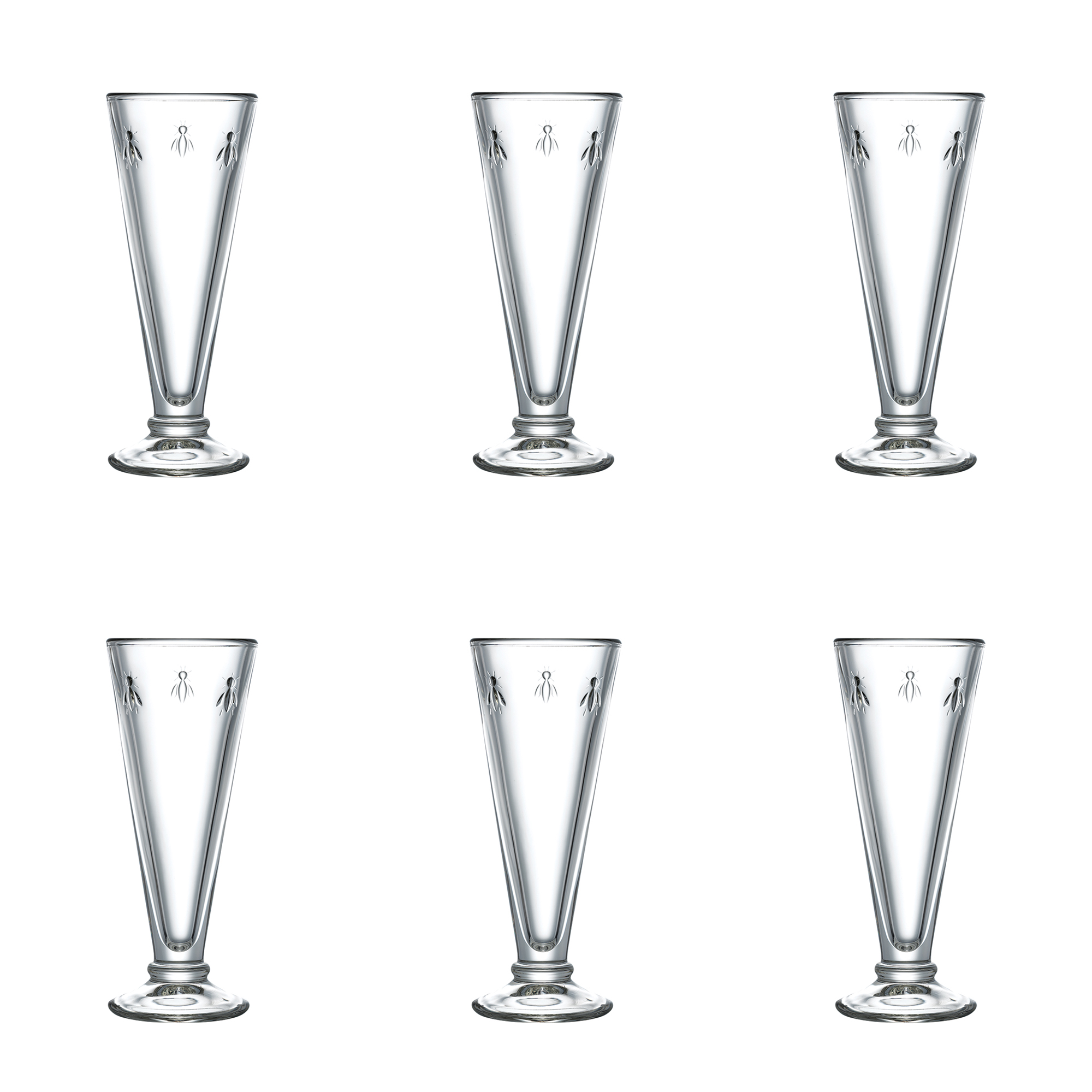 Champagneflöjt Abeille 6 st från franska La Rochère. Champagneglasen är smyckade med napoleonbin och passar till både champagne, mousserande viner och drinkar som bellini och mimosa. Rymmer 15 cl. Serien Abeille är La Rochères signaturglas dekorerade med bin. Bina är den symbol som Napoleon valde till sin kejsarkröning och som därefter fanns på jackor, mattor, flaggor och mycket annat under hans regeringstid. Glasen som har en modern silhuett med en charmig touch fungerar till både vardag och fest.