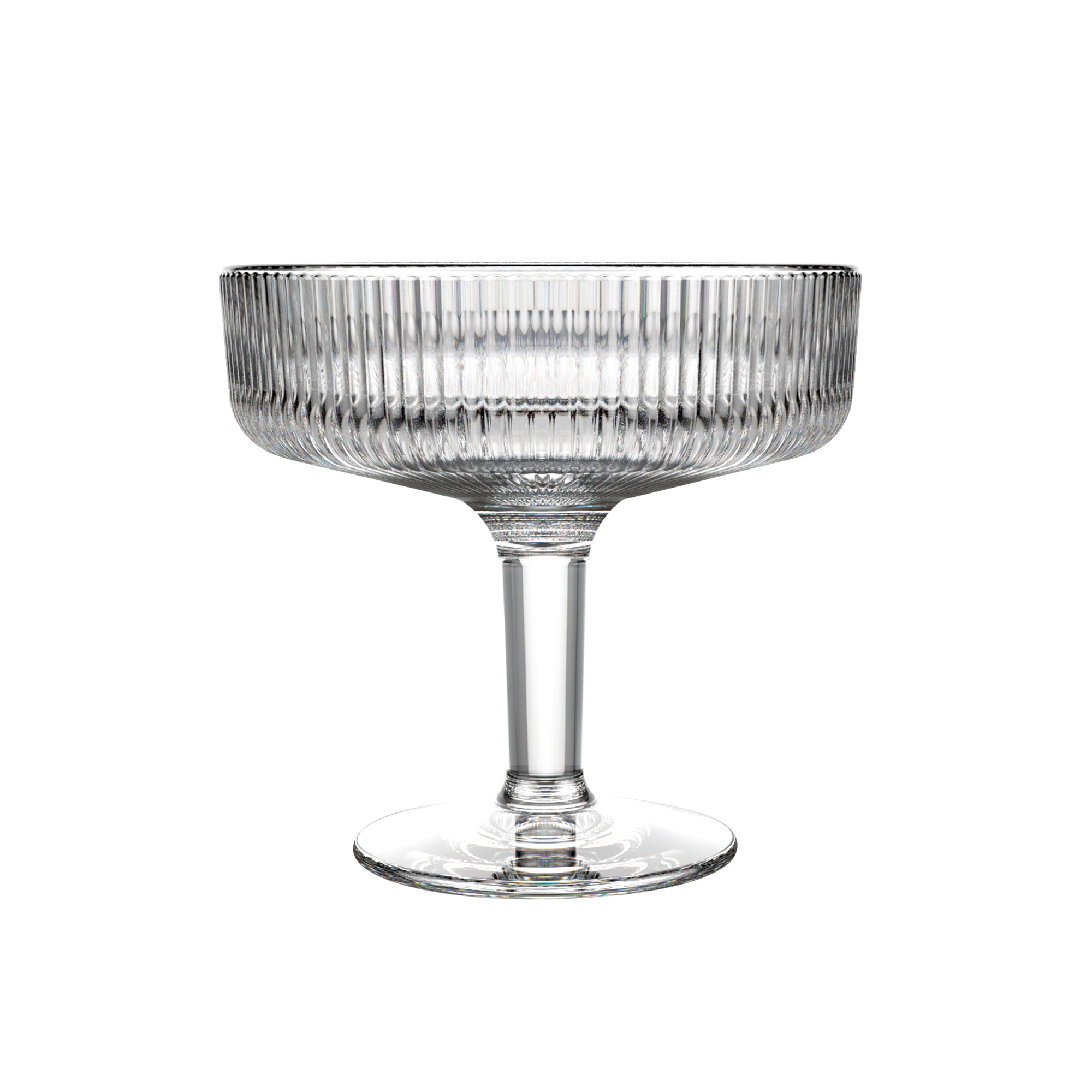 Alice dessertskål på fot 6 stfrån franska La Rochère. Ribbade dessertskålar som ger ett elegant med samtidigt enkelt intryck. Rymmer 33 cl och passar bra till desserter eller varför inte som drinkglas. Alice är en stabil och stapelbar dessertskål som ger extra elegans till det dukade bordet.