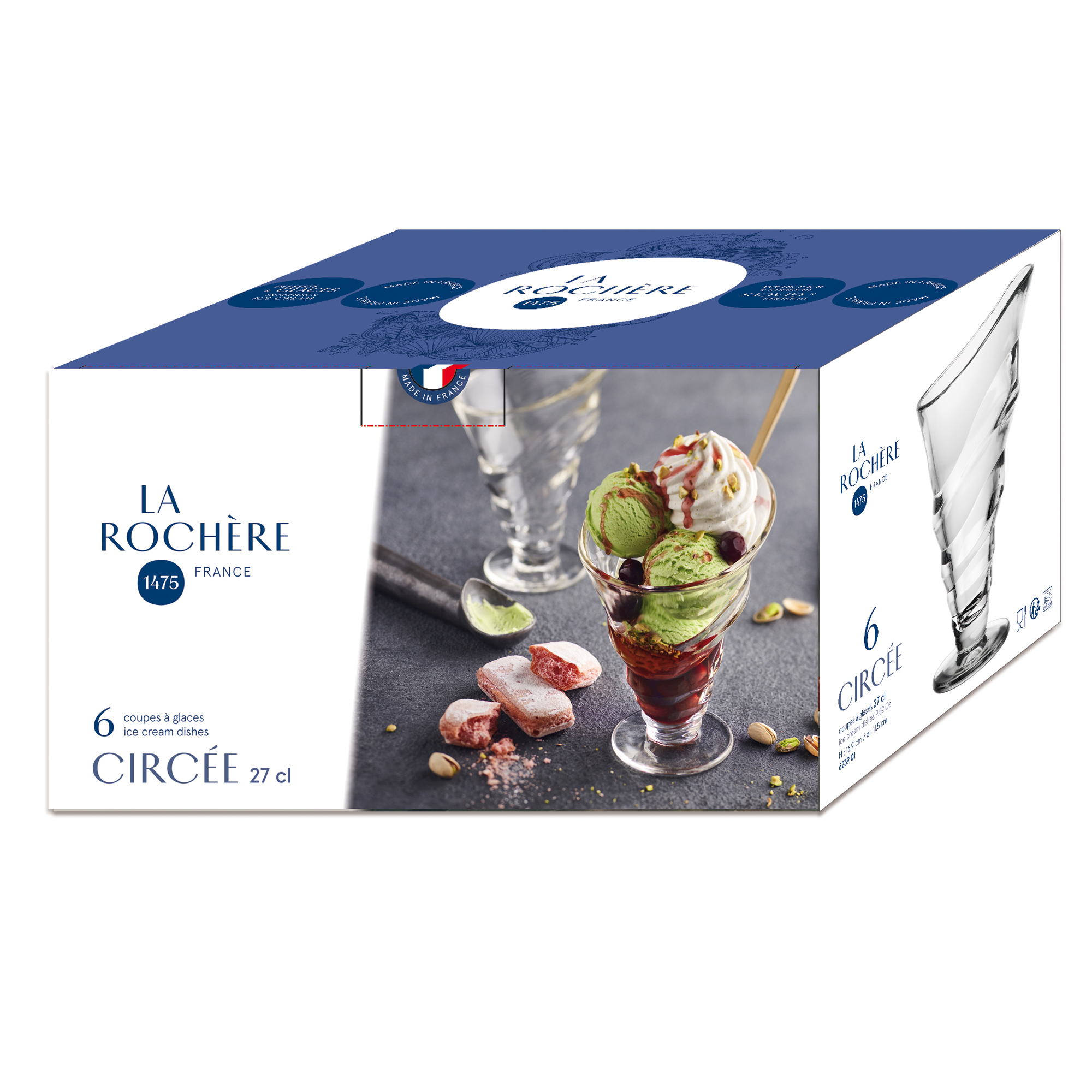Alla glas är pressade, en klassisk tillverkningsteknik som ger dem deras karakteristiska tyngd, precision och hållbarhet. Formgivningen hämtar inspiration från Frankrikes rika kulturarv – från elegant arkitektur till historiska symboler som den franska liljan.
