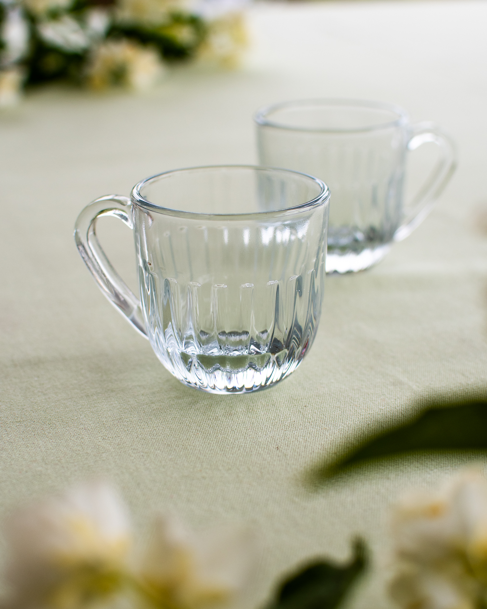 Liten mugg i glas till espresso. Ouessant är inspirerad av traditionella kanoter och i serien ingår flera olika glas med handtag. Rymmer 9 cl. Paket med sex glas.