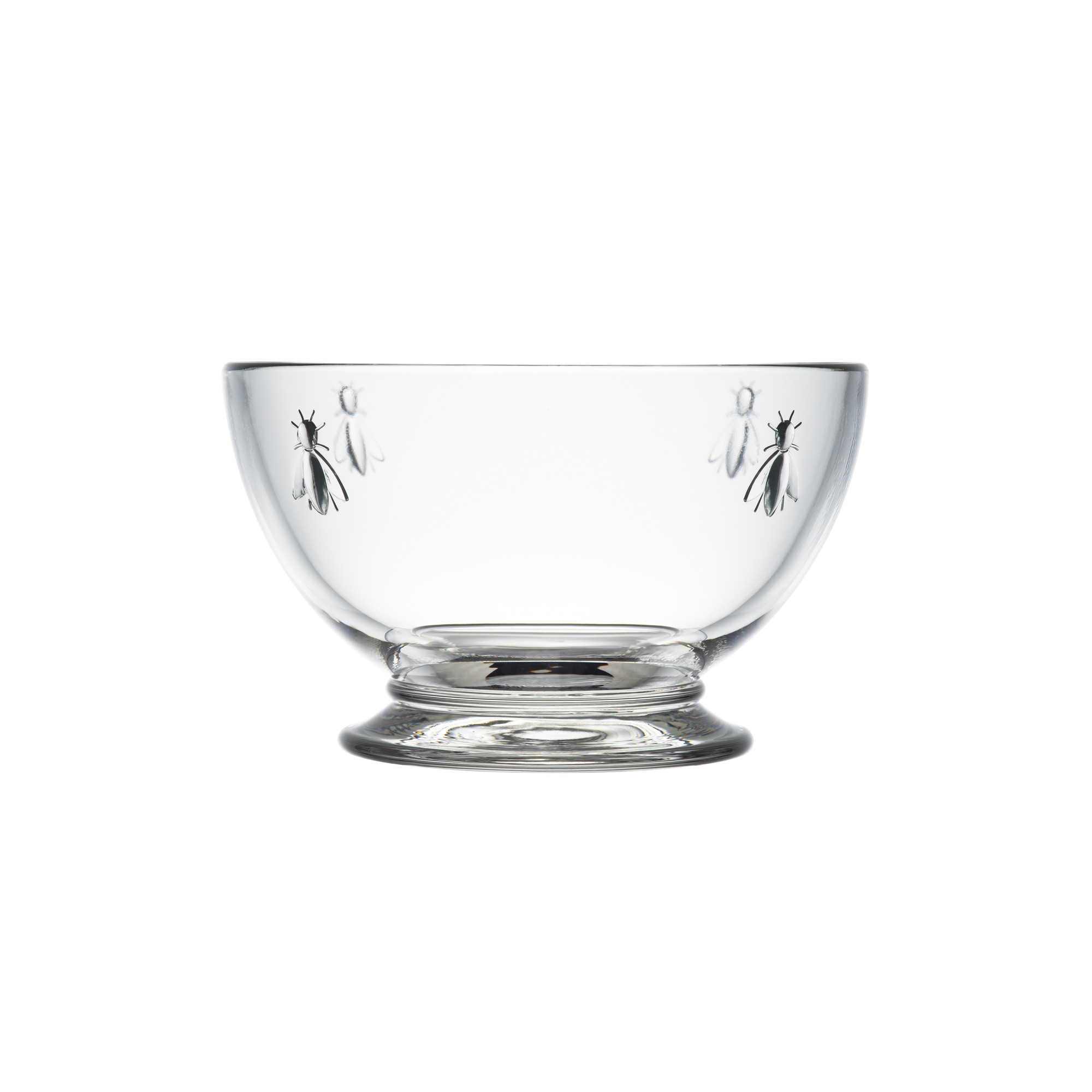 Glasskål Abeille 6 st från franska La Rochère. Skålarna är smyckade med napoleonbin och passar till både desserter, soppa, sallader eller frukostflingorna. Rymmer 6 cl. Serien Abeille är La Rochères signaturglas dekorerade med bin. Bina är den symbol som Napoleon valde till sin kejsarkröning och som därefter fanns på jackor, mattor, flaggor och mycket annat under hans regeringstid. Glasen som har en modern silhuett med en charmig touch fungerar till både vardag och fest.