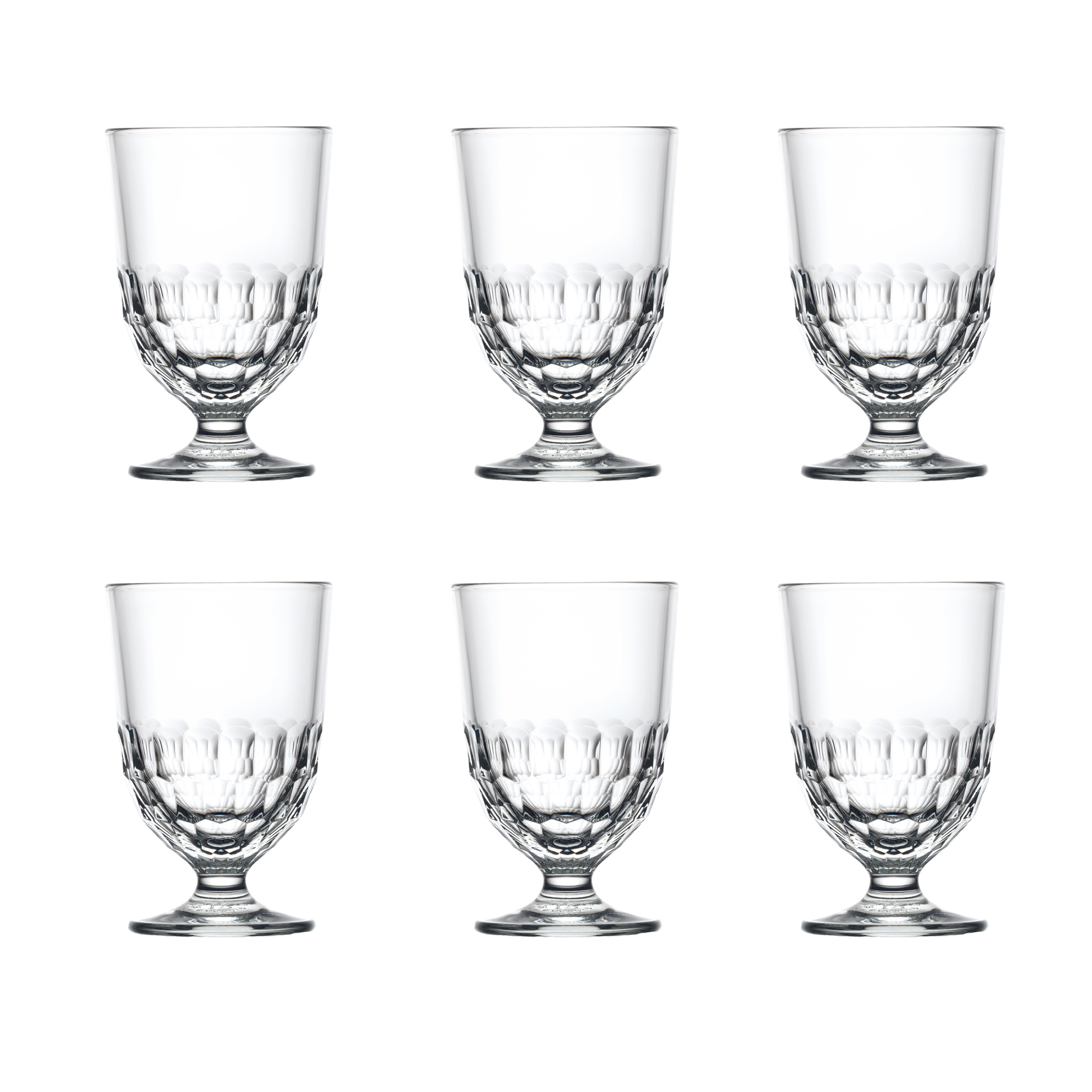 Alla glas är pressade, en klassisk tillverkningsteknik som ger dem deras karakteristiska tyngd, precision och hållbarhet. Formgivningen hämtar inspiration från Frankrikes rika kulturarv – från elegant arkitektur till historiska symboler som den franska liljan.