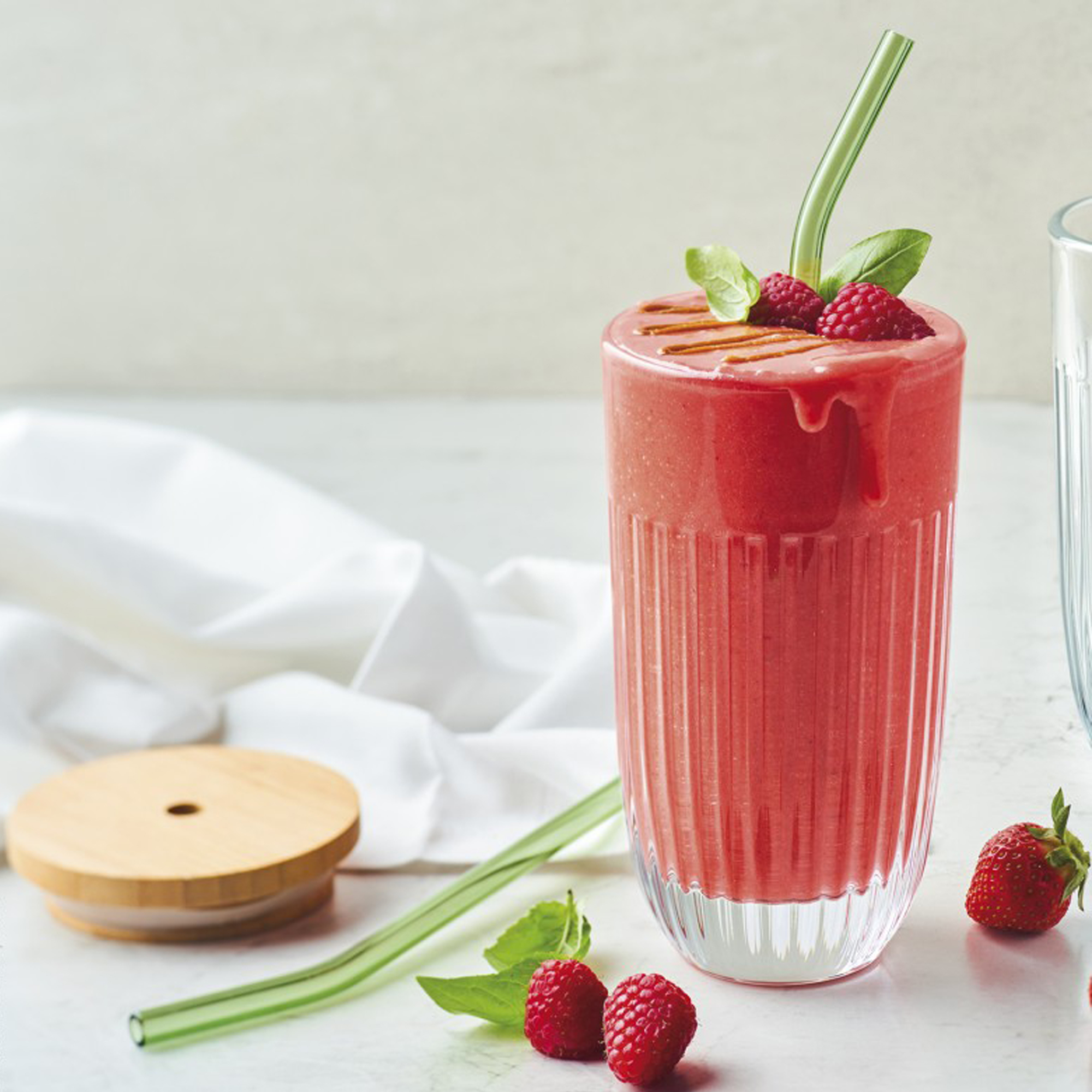 Smoothieglas med lock och sugrör Ouessant från franska La Rochère. Ribbat glas som ger ett elegant med samtidigt enkelt intryck. Glasen rymmer 43 cl och passar bra till kalla drycker så som öl, iste och drinkar. Serien Ouessant är en modern version av en älskad fransk design och är inspirerad av bretonska kanoter där Ouessant uttrycker havets hårda vågor. Glaset har ett lyster som kommer fram tack vare de ribbade linjerna längs med glasen. En elegant men samtidigt enkel kollektion som passar både till frukostbordet och festligare middagar.
