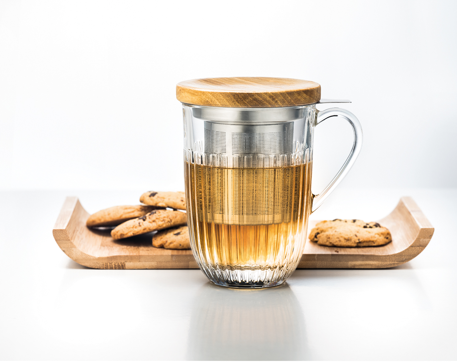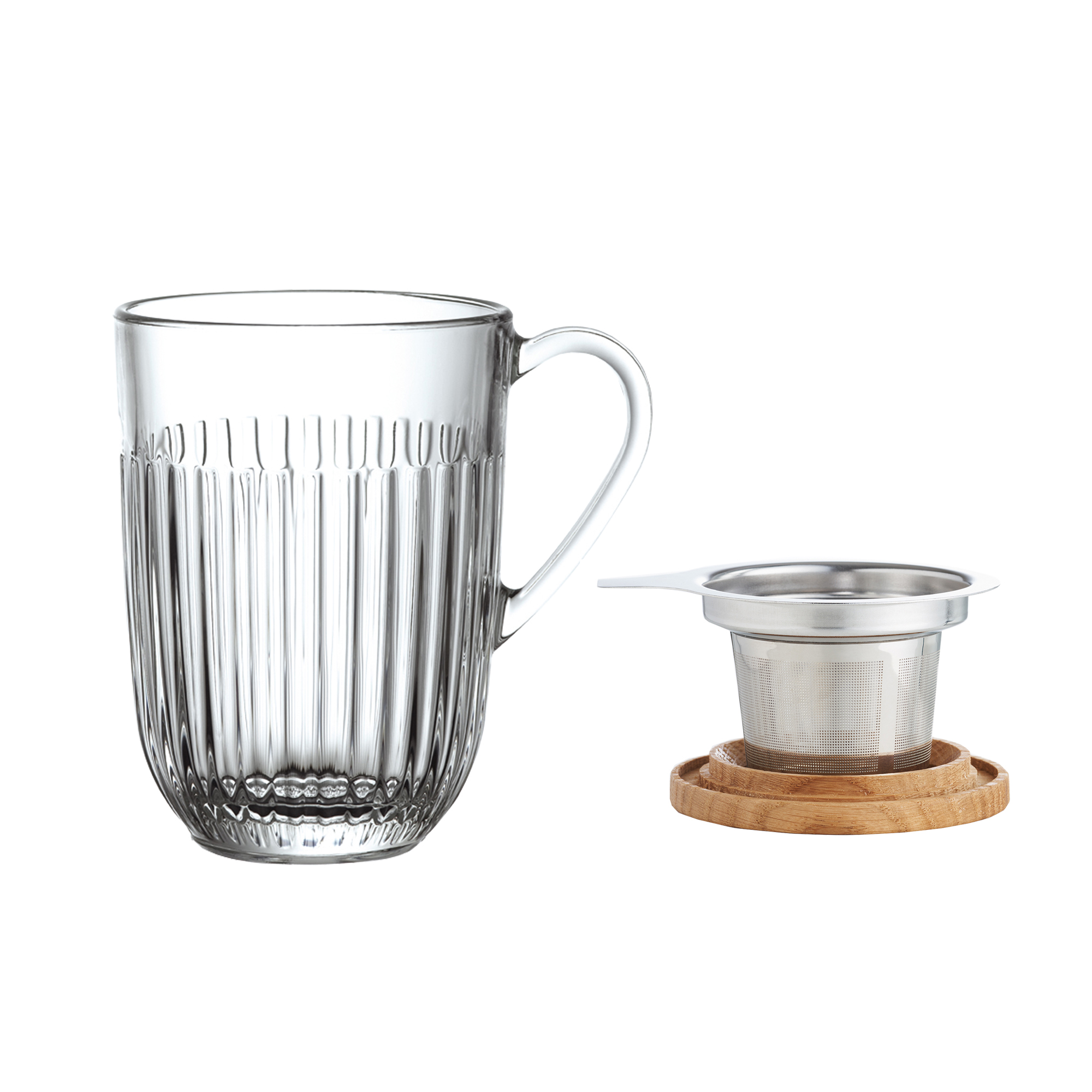 Tisaniere Ouessant från franska La Rochere. En temugg med tesil och lock i bambu. Tesilen är tillverkad i rostfritt stål och är rymlig för att teet ska få utrymme att utveckla alla smaker. Rymmer 36 cl. Serien Ouessant är en modern version av en älskad fransk design och är inspirerad av bretonska kanoter där Ouessant uttrycker havets hårda vågor. Glaset har ett lyster som kommer fram tack vare de ribbade linjerna längs med glasen. En elegant men samtidigt enkel kollektion som passar både till frukostbordet och festligare middagar.