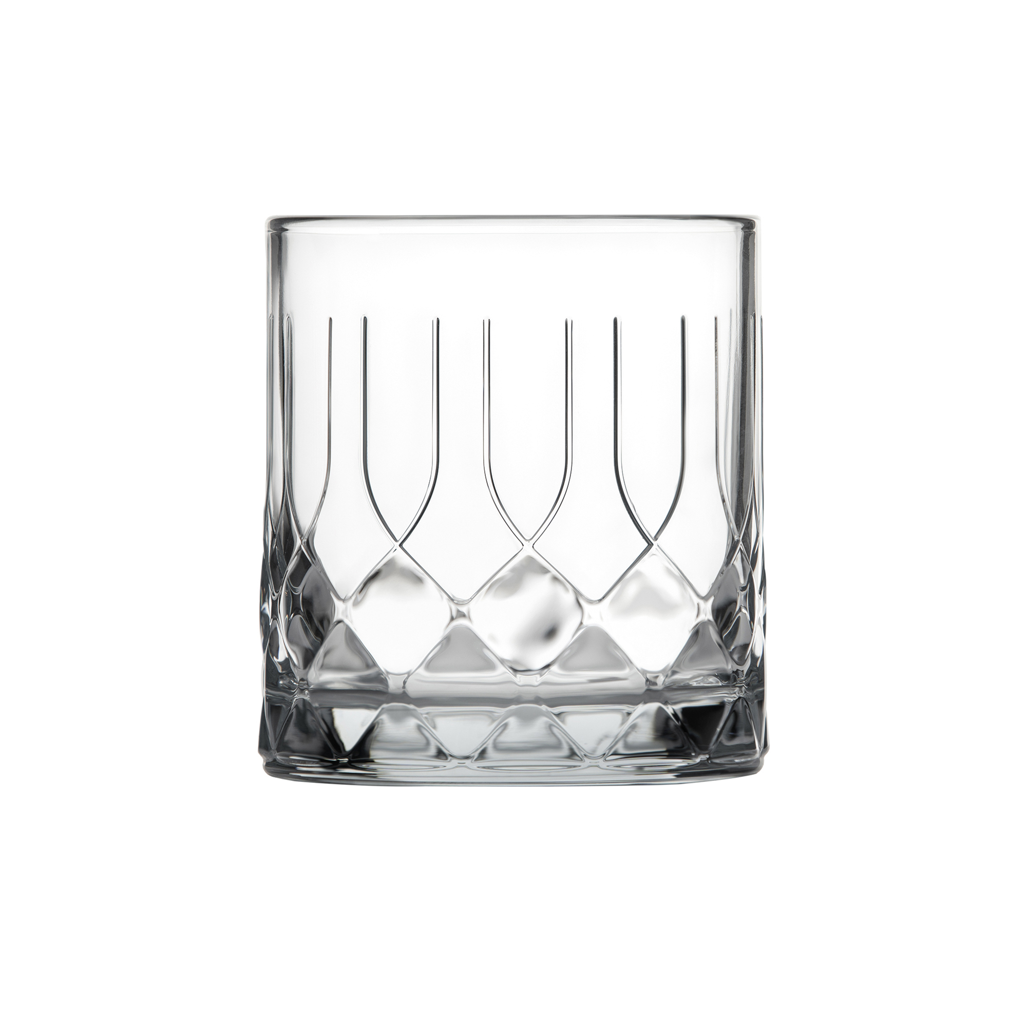Robust klassiskt whiskyglas med mönster som ger Chicago-vibbar.