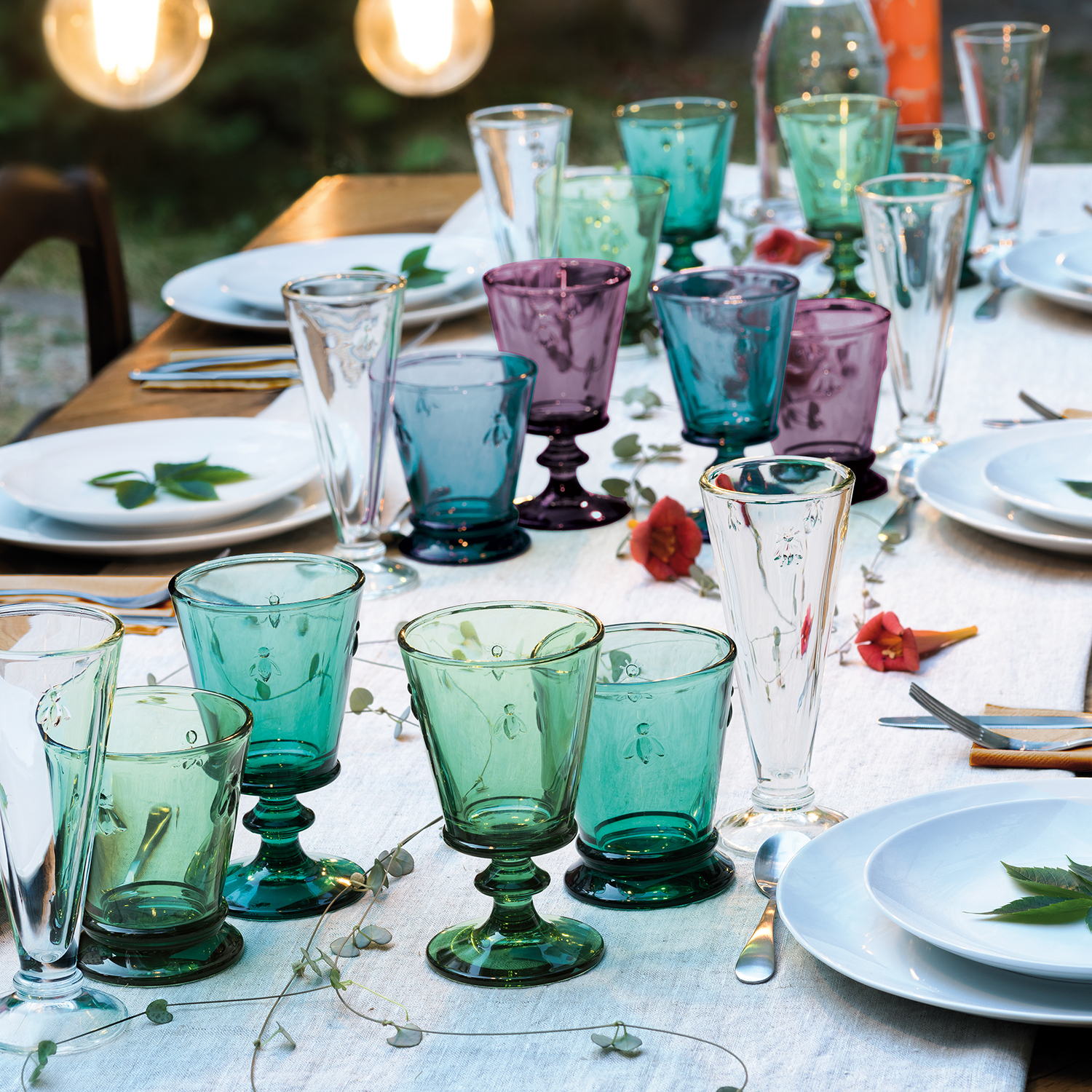 Alla glas är pressade, en klassisk tillverkningsteknik som ger dem deras karakteristiska tyngd, precision och hållbarhet. Formgivningen hämtar inspiration från Frankrikes rika kulturarv – från elegant arkitektur till historiska symboler som den franska liljan.