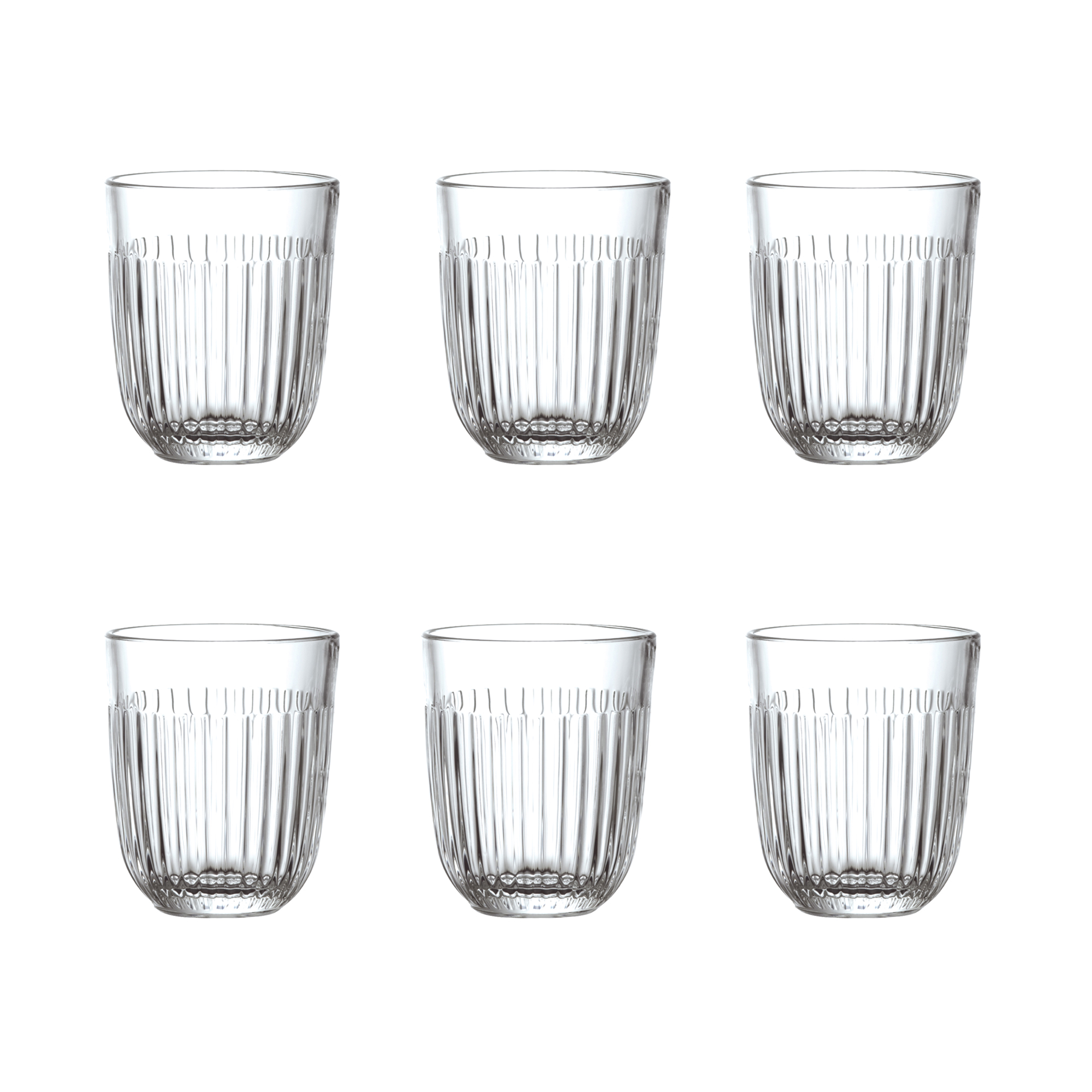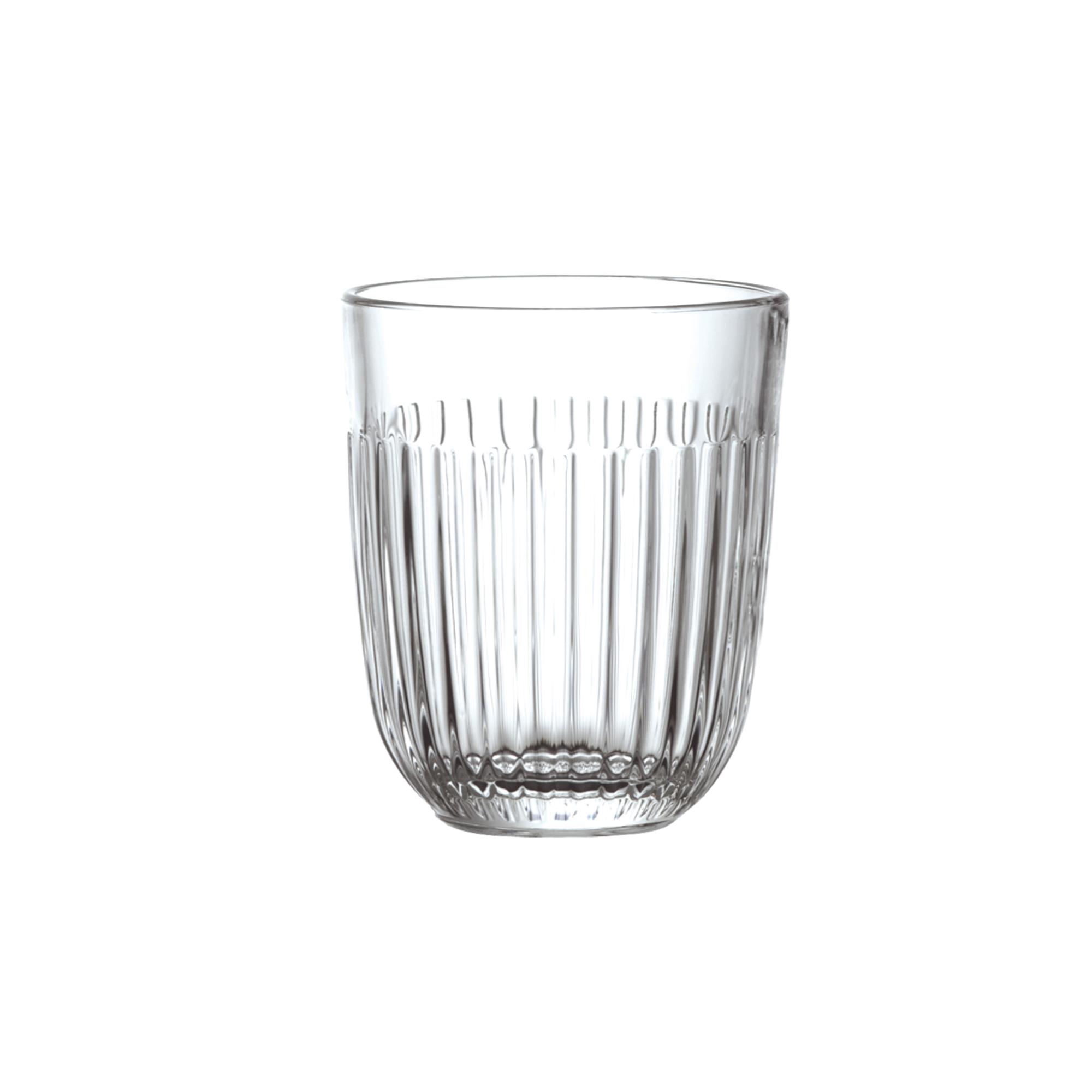 Vattenglas Ouessant 6 st från franska La Rochère. Ribbat glas som ger ett elegant med samtidigt enkelt intryck. Rymmer 29 cl och passar bra till kalla drycker så som vatten, läsk och saft. Serien Ouessant är en modern version av en älskad fransk design och är inspirerad av bretonska kanoter där Ouessant uttrycker havets hårda vågor. Glaset har ett lyster som kommer fram tack vare de ribbade linjerna längs med glasen. En elegant men samtidigt enkel kollektion som passar både till frukostbordet och festligare middagar.