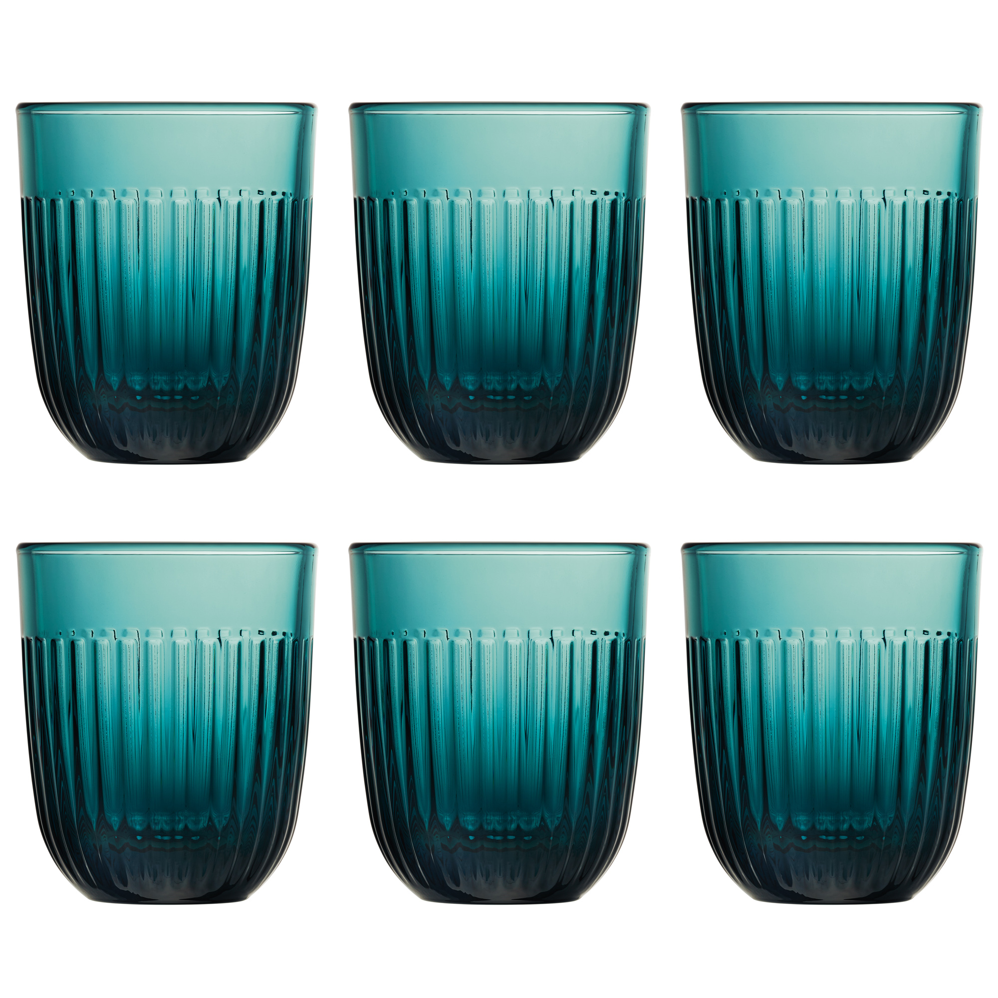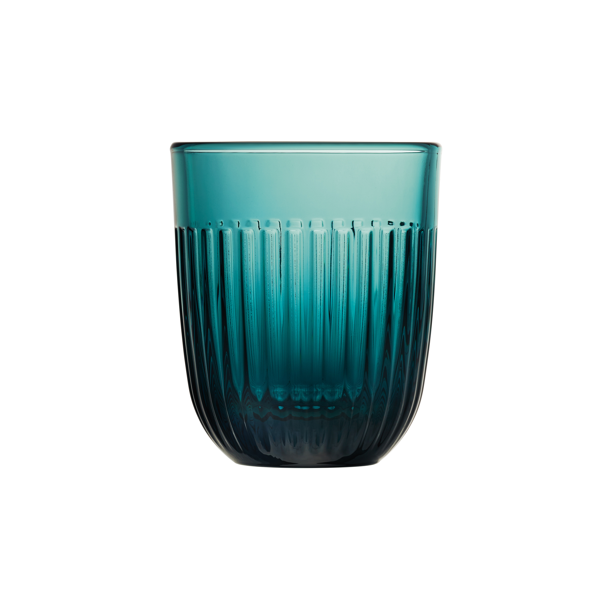 Vattenglas Ouessant Mörkblå 6 st från franska La Rochère. Ribbat glas som ger ett elegant med samtidigt enkelt intryck. Rymmer 29 cl och passar bra till kalla drycker så som vatten, läsk och saft. Serien Ouessant är en modern version av en älskad fransk design och är inspirerad av bretonska kanoter där Ouessant uttrycker havets hårda vågor. Glaset har ett lyster som kommer fram tack vare de ribbade linjerna längs med glasen. En elegant men samtidigt enkel kollektion som passar både till frukostbordet och festligare middagar.