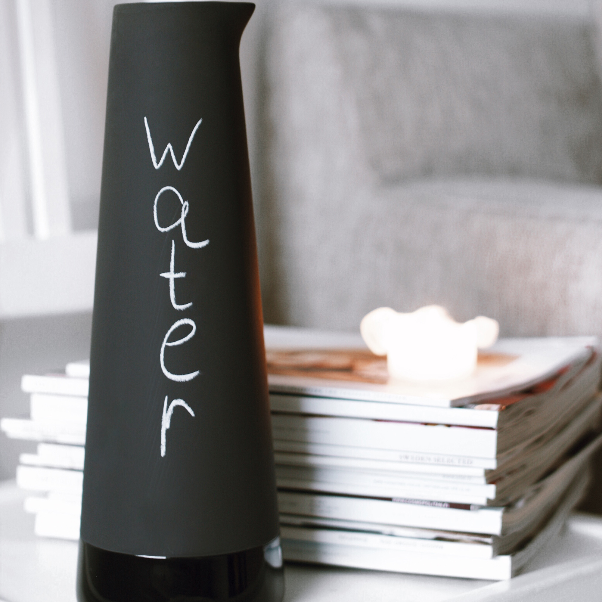 Tillbringare i keramik. Skölj karaffen i kallt vatten i cirka en minut innan användning. Det porösa materialet i karaffen absorberar det kalla vattnet och håller din dryck kall i upp till fyra timmar.