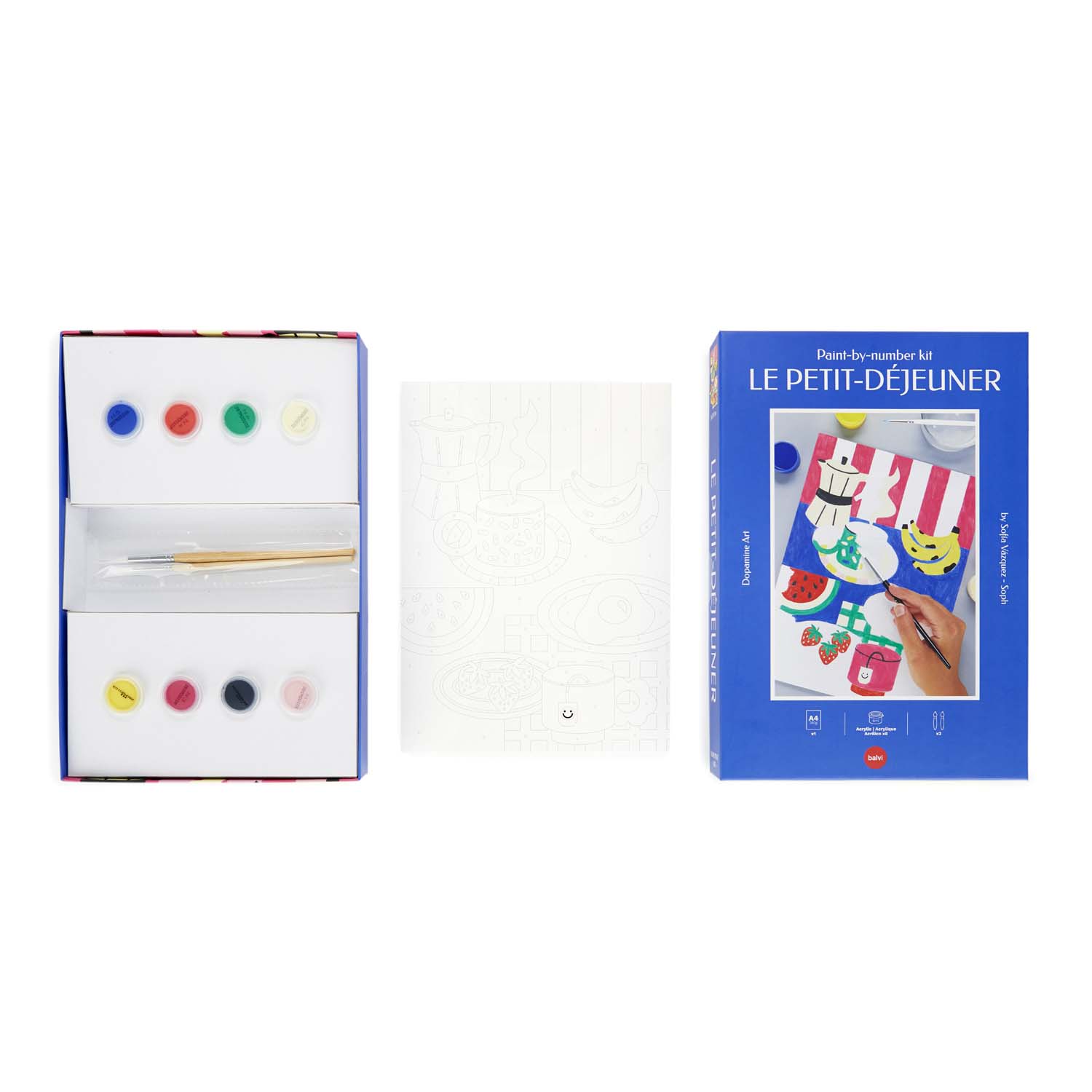 Stig upp och måla! Detta glada målarpaket för frukost är perfekt för dig själv eller som present. Det innehåller akrylfärger och penslar, så att du enkelt kan koppla av, njuta av färgerna och skapa ditt eget DIY-konstverk.