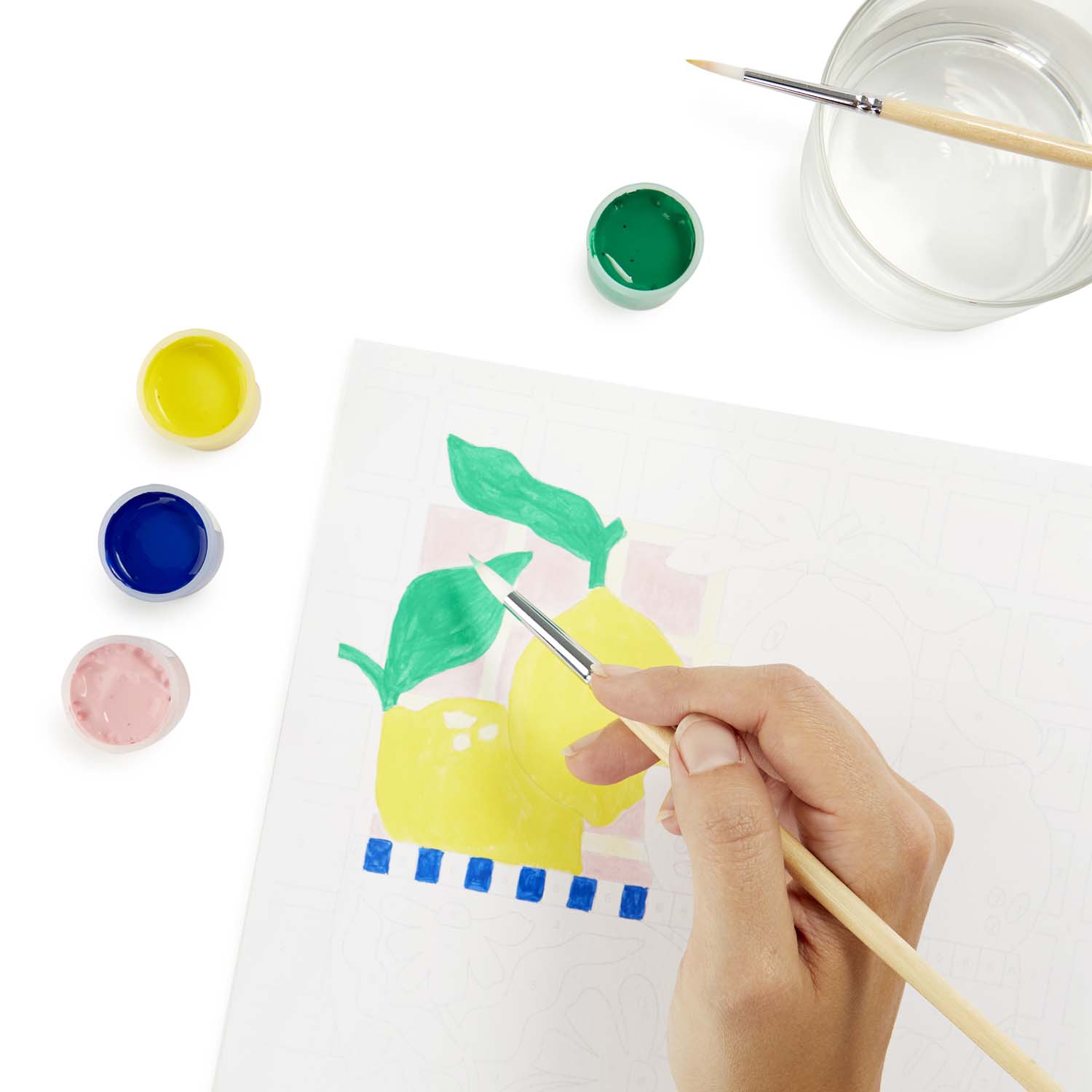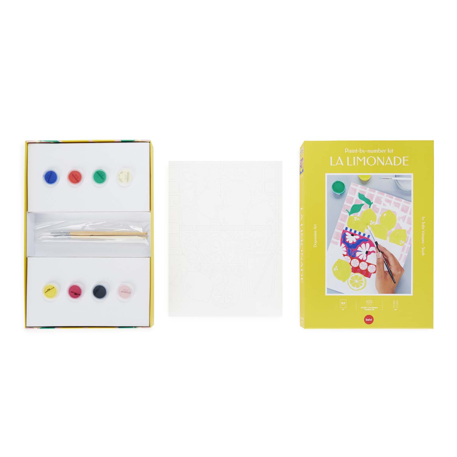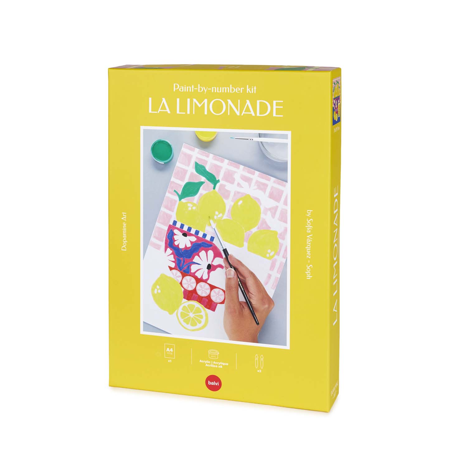 Pressa ut det mesta av dagen! Detta lekfulla målarpaket med citronmotiv är perfekt för dig själv eller som present. Det innehåller akrylfärger och penslar, så att du enkelt kan koppla av, njuta av färgerna och skapa ditt eget DIY-konstverk.