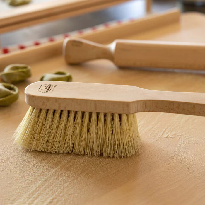 Borste med borst av vegetabiliskt ursprung, perfekt för att borsta bort mjöl från arbetsytan.