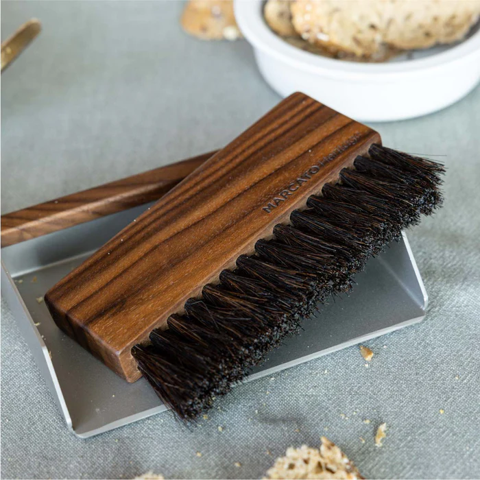 Briciola är ett kompakt set bestående av en borste och en bordsskopa, perfekt för att snabbt städa av bordet eller arbetsytan.
