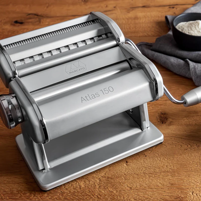 Med Atlas 150 i den vackra färgen kan du enkelt tillaga lasagne, fettuccine, tagliolini och ytterligare 11 olika pastasorter tack vare det breda utbudet av tillbehör.