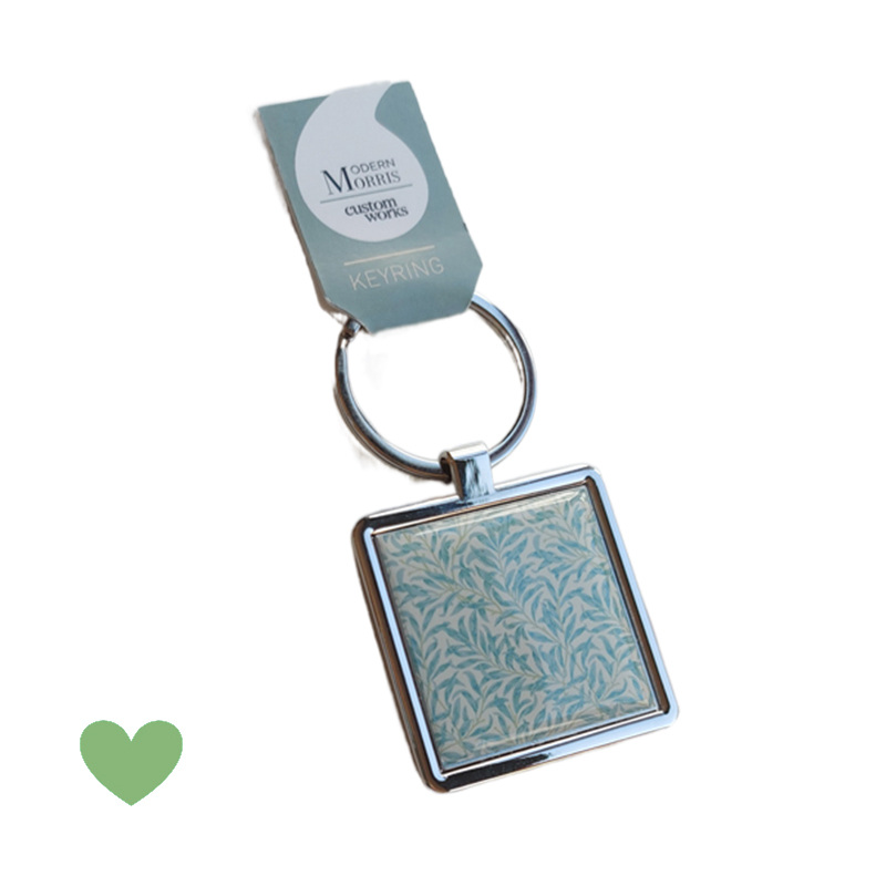 Nyckelring i solid metall med silverfinish och välvd resininsats. Resin (harts) ovanpå tryckt motiv, på framsidan Baksida i slät metall. Fsc hantel etikett på ringen.