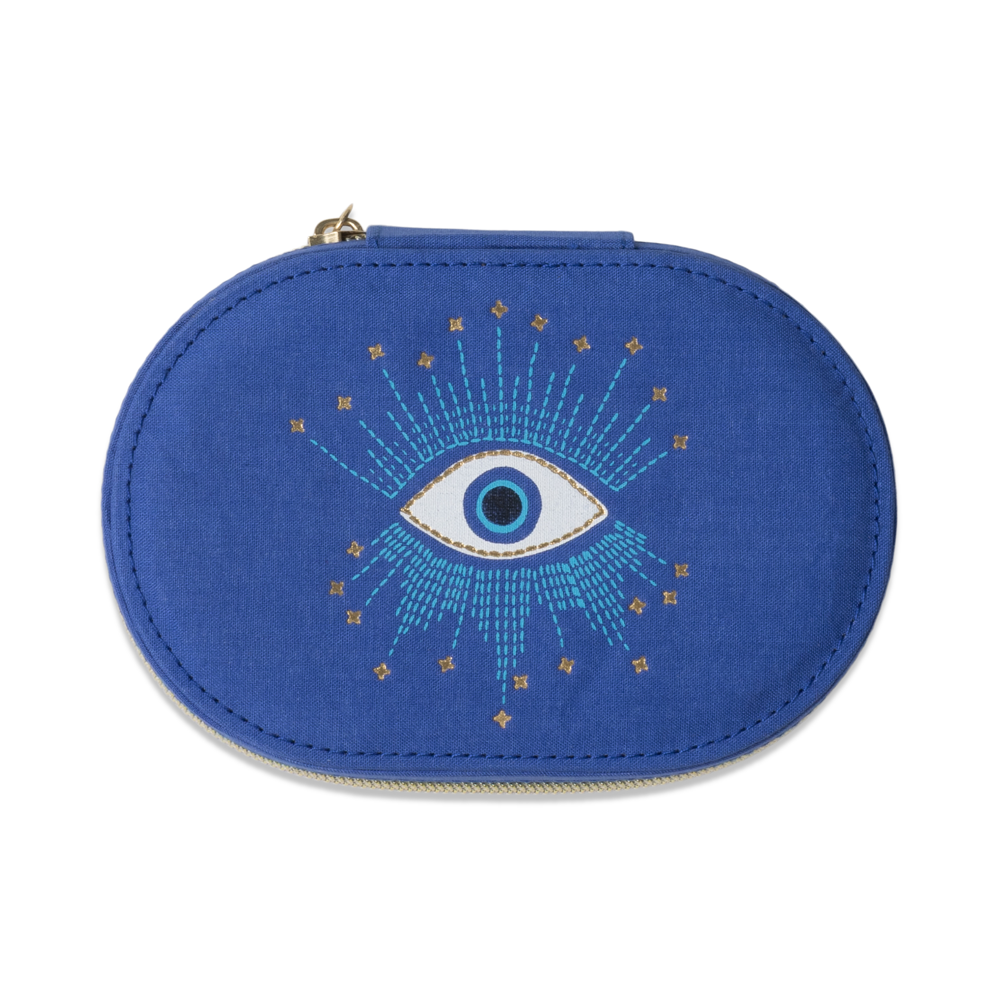 Förvara dina älskade smycken och små skatter säkert i vårt ovala smyckeskrin med himmelskt tema. Insvept i elegant bokduk och fodrat med mjuk sammet, är detta vackert utformade fodral designat för att skydda dina favoritplagg samtidigt som det ger en touch av himmelsk charm till ditt sminkbord eller din resväska.