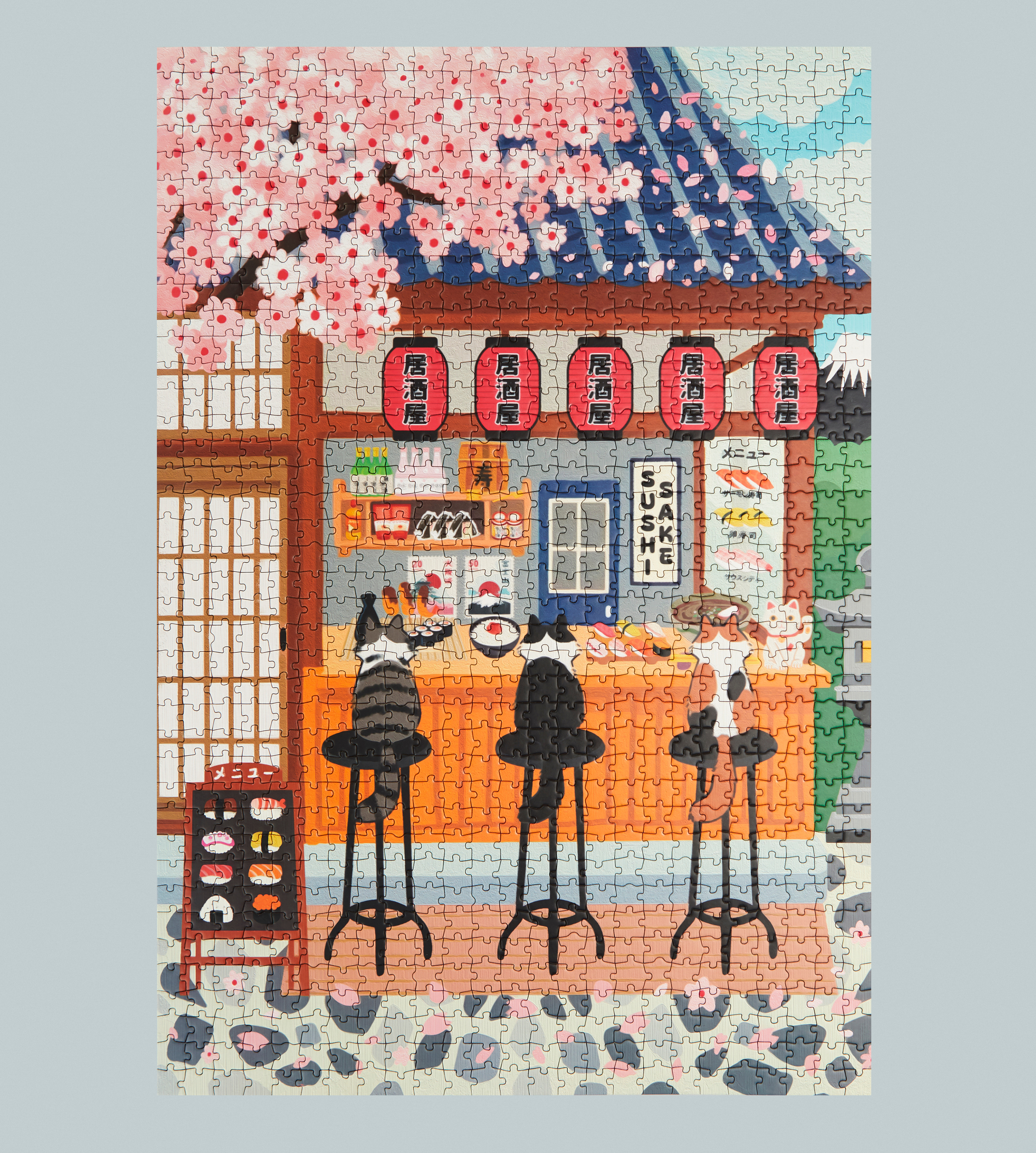 Balvi Puzzle Sushi Cats 1000-bitars konstverk av illustratören Yuna Moona. EXKLUSIV KONST. Unik illustration av den begåvade illustratören Yuna Moona. Hennes scener, bebodda av älskvärda djur, förvandlar vardagen till stunder fulla av charm. PERFEKT NÄRVARANDE. Perfekt för fans av pussel, katter, Japan, sushi eller japansk mat. När den är klar förvandlas den till ett unikt dekorativt föremål. EUROPEISK PRODUKTION. Tillverkad i Spanien med högkvalitativa material. Upptäck resten av samlingen: Cat Cafe, Flower Shop och Bath Time. FUNKTIONER. 1000 bitars pussel, medelhög svårighetsgrad (14+ år). Mått: 66 x 45 cm. Kompakt designbox för bättre förvaring. Mått: 66x45x0,17 cm Material: kartong - Designad av: Yuna Moona