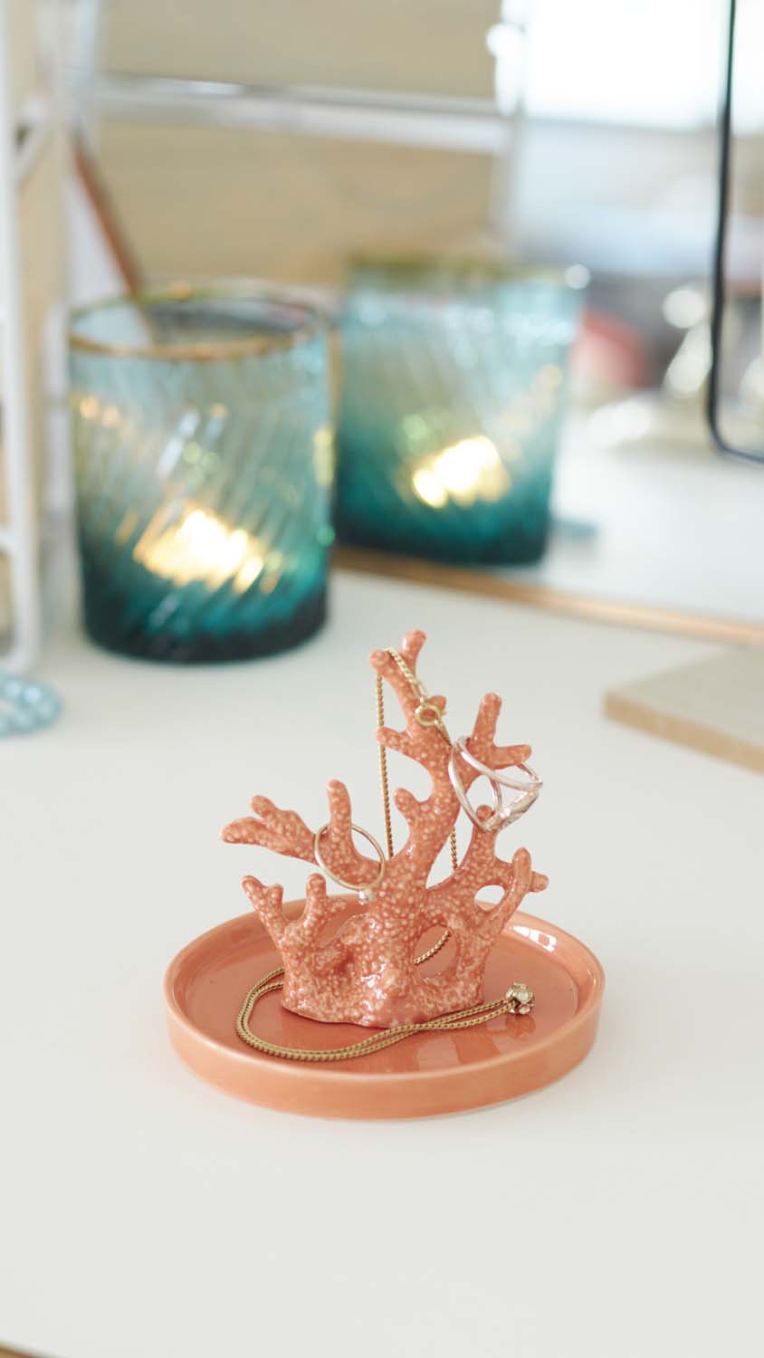 Ringhållare Arrecife – Ett annorlunda sätt att förvara dina smycken, med en unik och originell design i form av en marin korall. Dekorativt. Idealiskt att ha den i badrummet, på ett bord eller synlig på en hylla. Praktiskt. Du kan hänga upp smyckena du bär när du kommer hem eller välja vilka du ska ha på dig nästa dag. Design: Med rena linjer. Denna hållare funkar för alla åldrar. Den perfekta presenten för de marina världens älskare. Mått: 9,6x10x10 cm Material: porslin - Designat av: Balvi