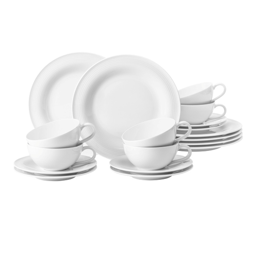 Beat från Seltmann Weiden är ett modernt och högkvalitativt porslin tillverkat till 1% i Tyskland. Seltmann tar stor hänsyn till miljön i sin produktion och produkterna innehåller inga främmande kemikalier. Alla produkter är helt fria från bly och kadmium. Denna teservis i 18 delar är i vitt porslin och innehåller sex stycken tekoppar ,3 liter, sex fat 16.5 cm samt sex stycken frukosttallrikar 23 cm.