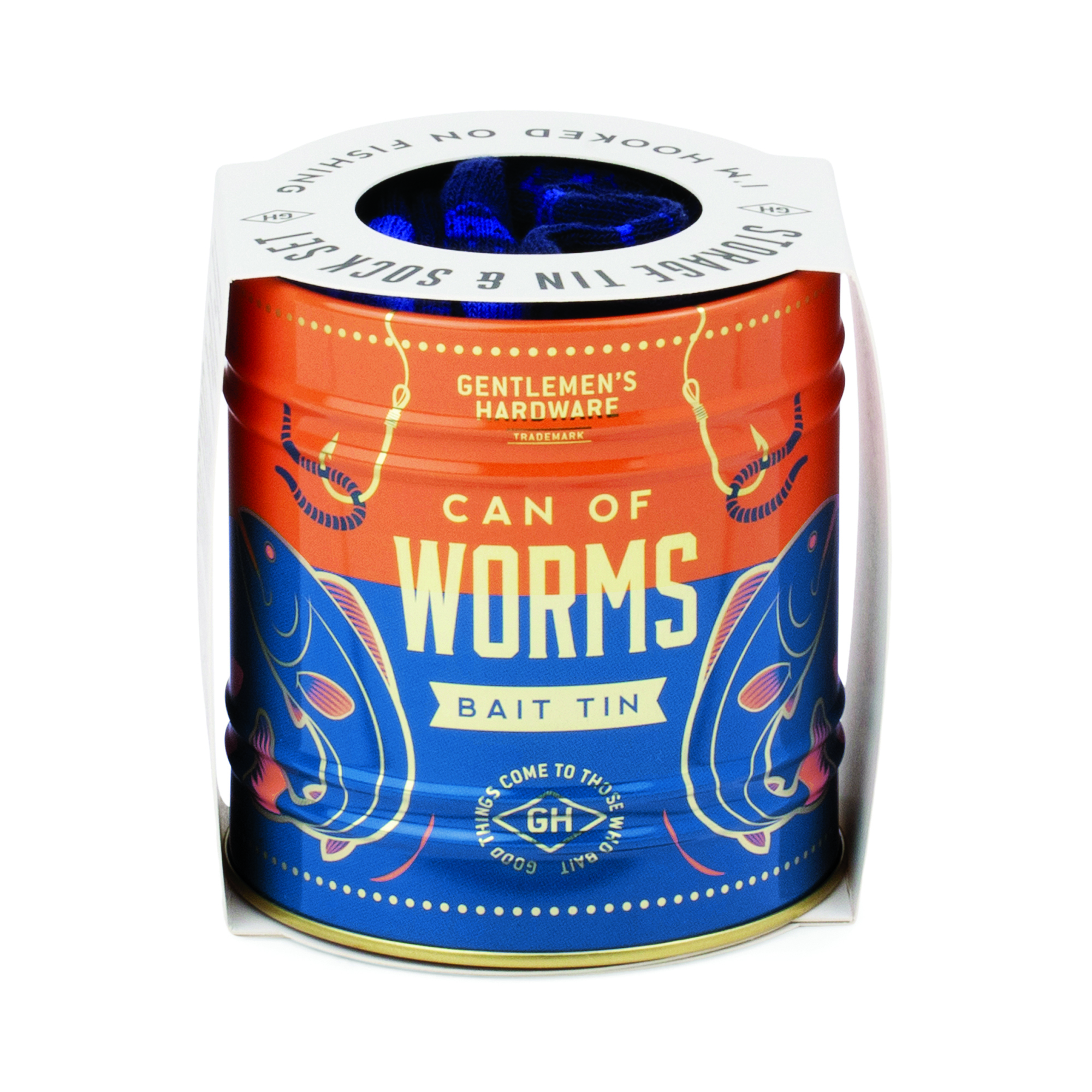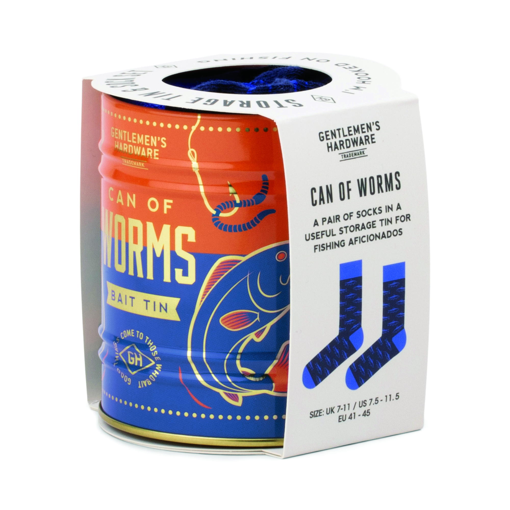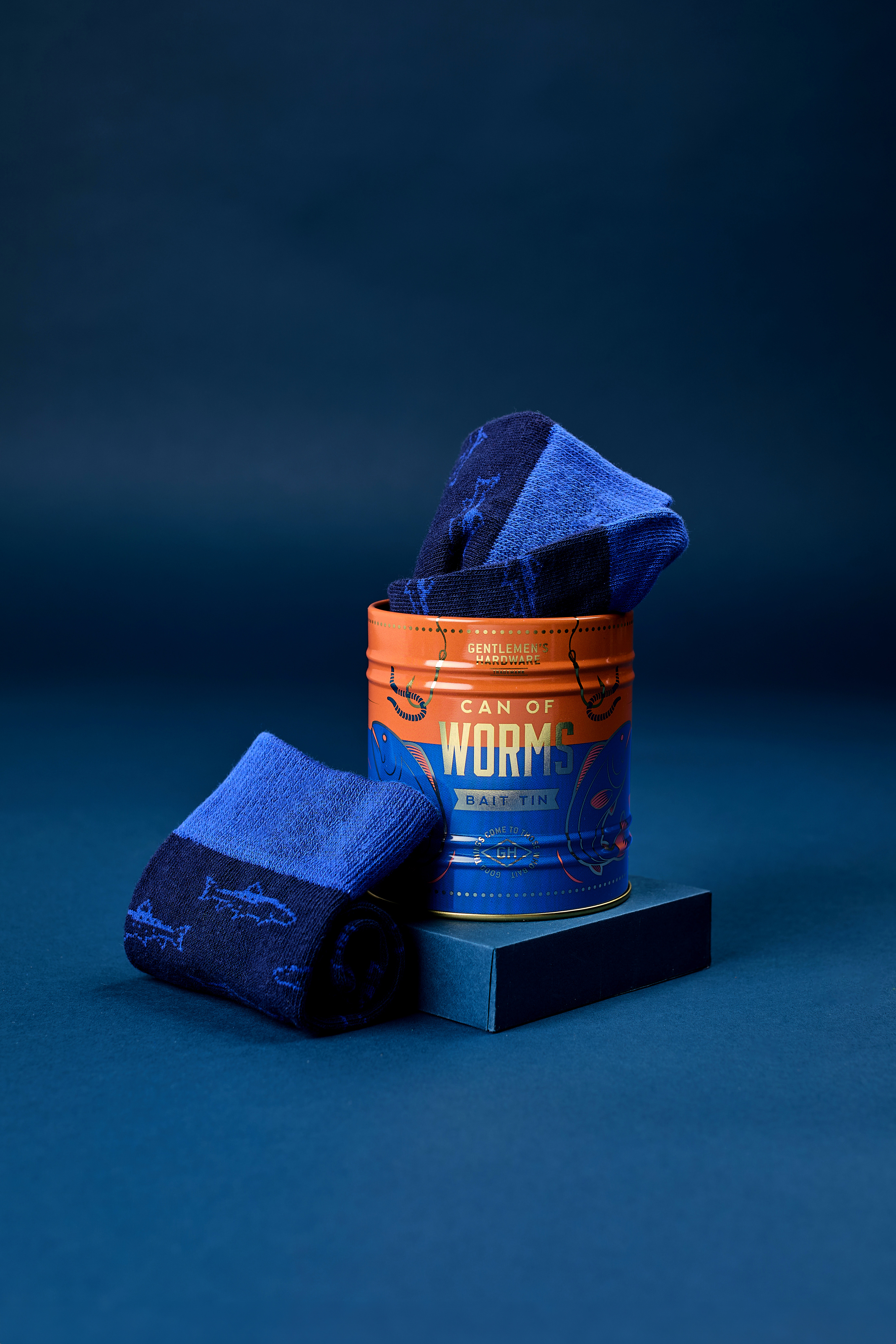 Ett par strumpor i en praktisk förvaringsburk för den fiskeintresserade.