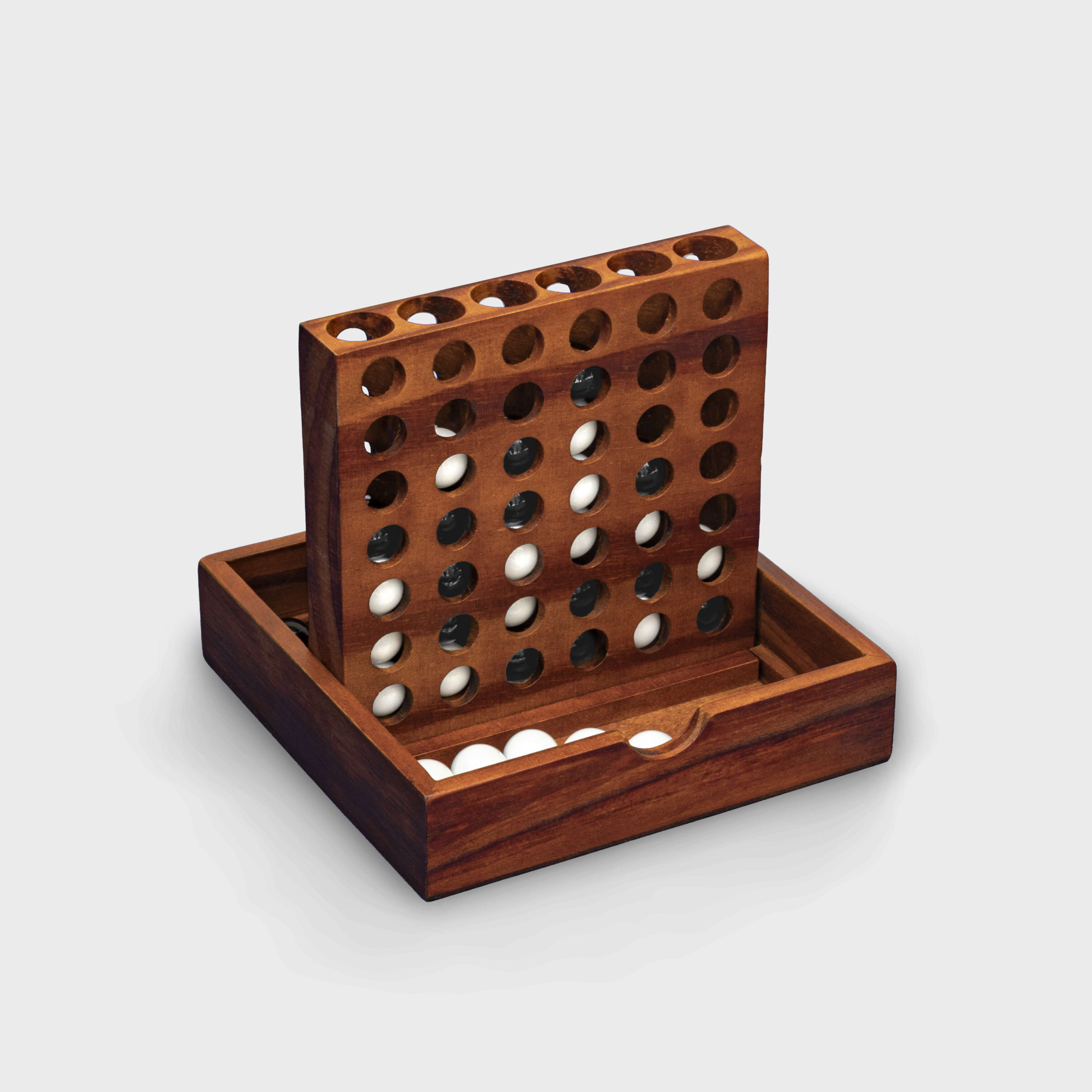 Ett klassiskt strategispel för två spelare. Turas om att släppa färgade kulor i ett vertikalt rutnät, med målet att vara den första att få fyra i rad, antingen horisontellt, vertikalt eller diagonalt, samtidigt som du hindrar din motståndare från att göra detsamma. Det är ett spel som kräver taktisk framförhållning, eftersom kulorna faller till den lägsta tillgängliga platsen i en vald kolumn, vilket gör placeringen strategisk.