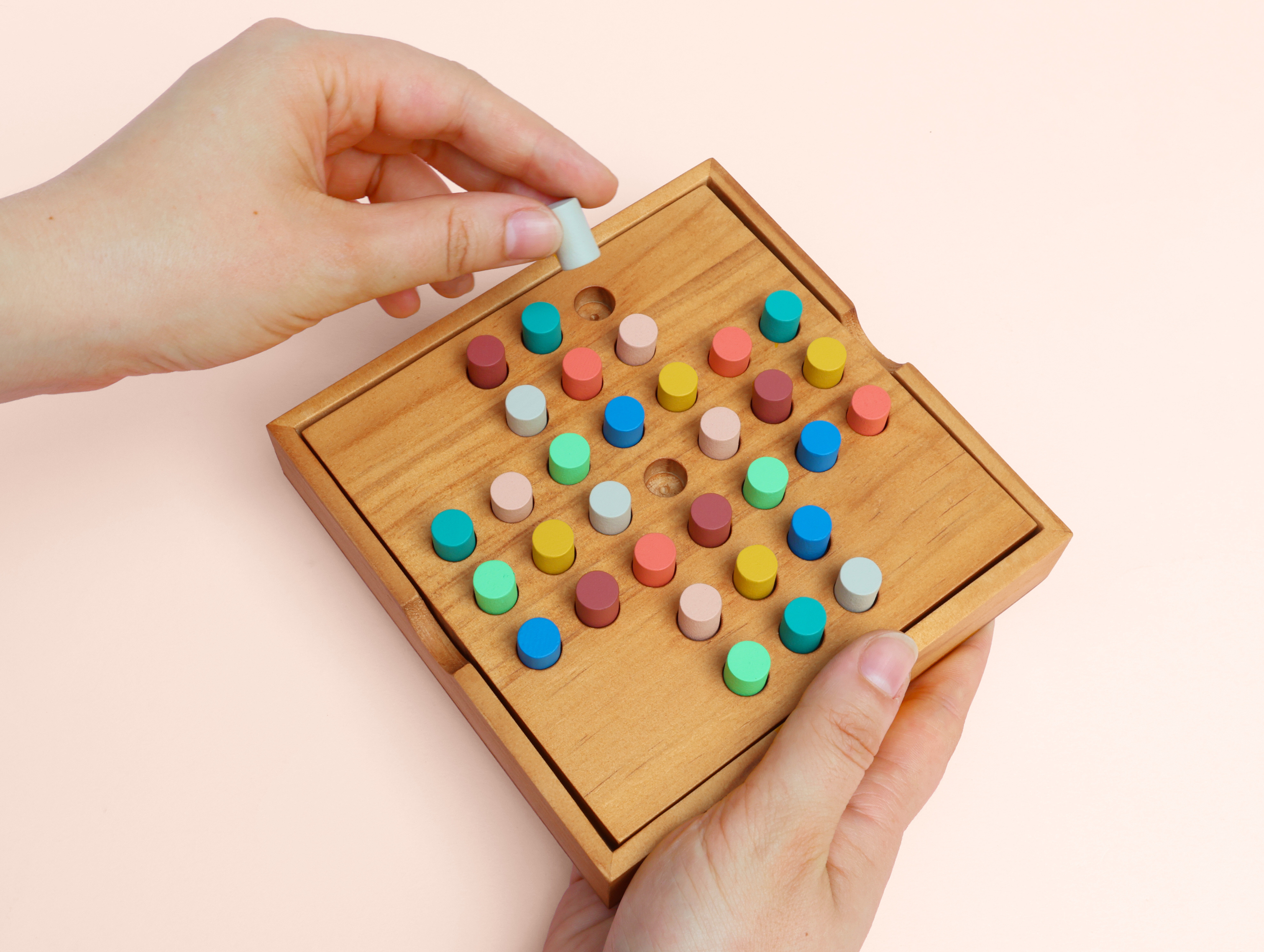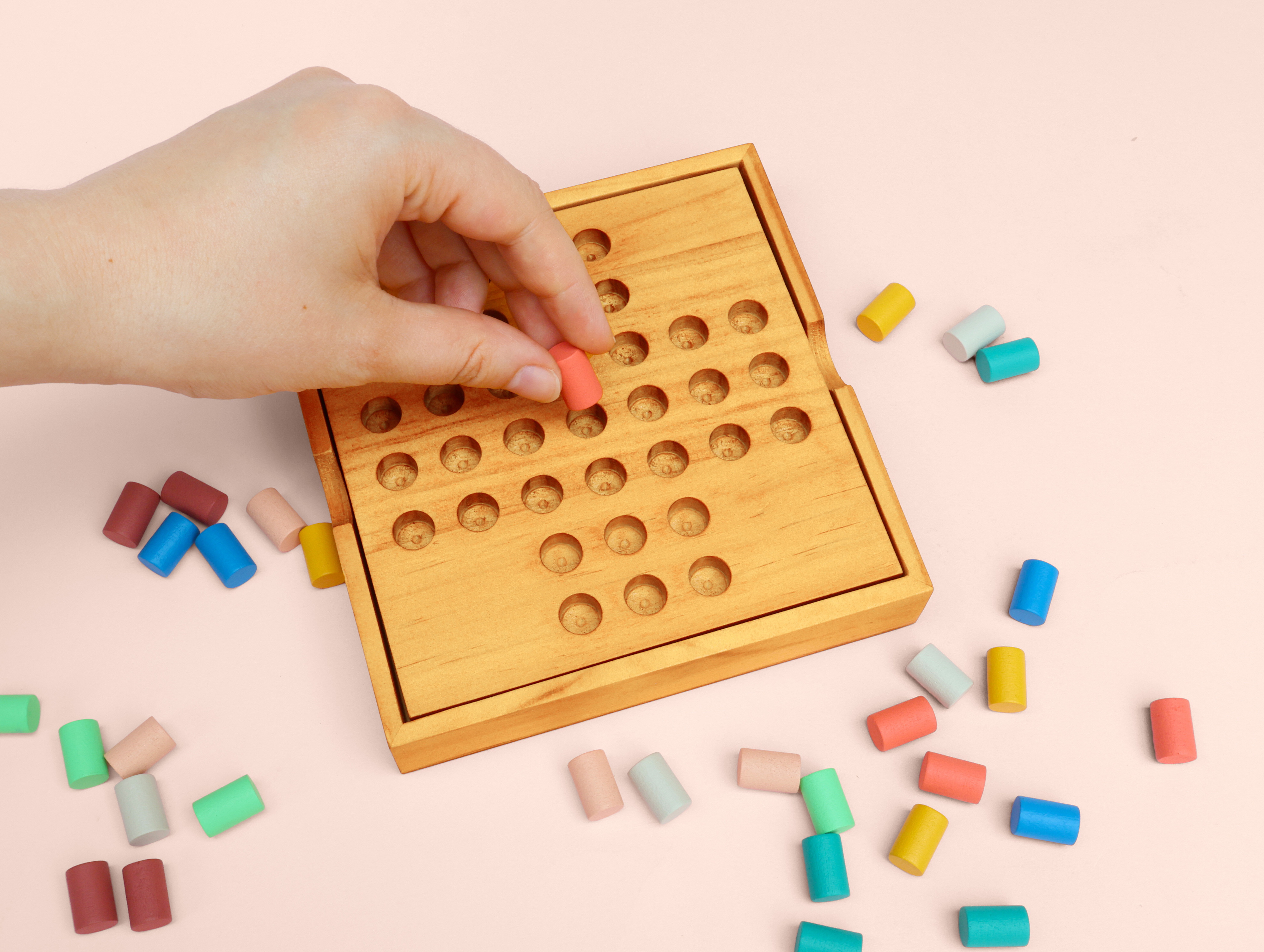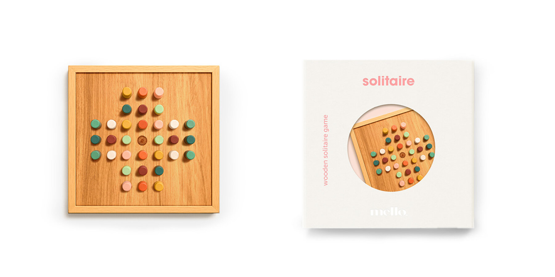 Mello solitär set i trä. Vackert patiensspel i trä. Färgglad design som är lätt att titta på. Ta dig tid att slappna av i sinnet.