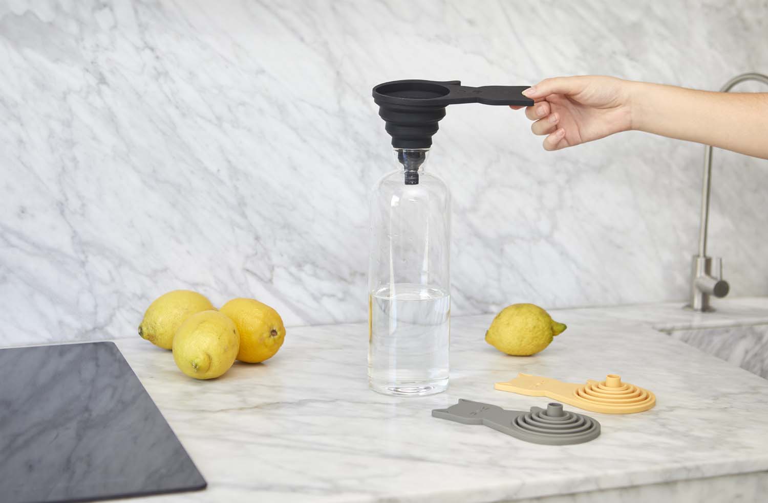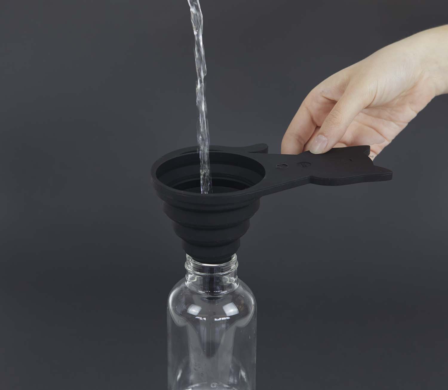 Häll med perfektion med denna hopfällbara tratt med kattmotiv, komplett med upphöjd nos och morrhår. Kompakt, magnetisk och lätt att rengöra – ett lekfullt och praktiskt tillskott till alla kök.