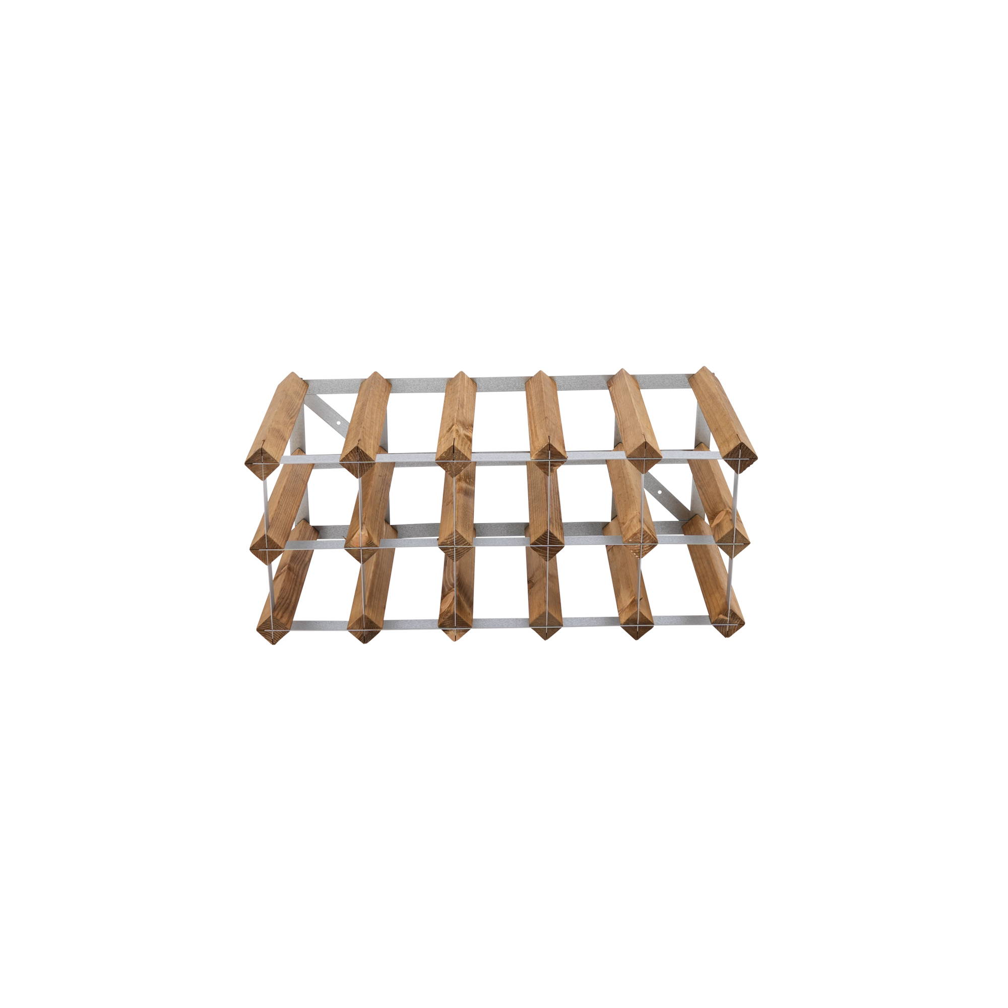 Påbyggnadsbart vinställ för 15 flaskor. Levereras omonterat. Stabil konstruktion och tillverkad av svenskt trä.