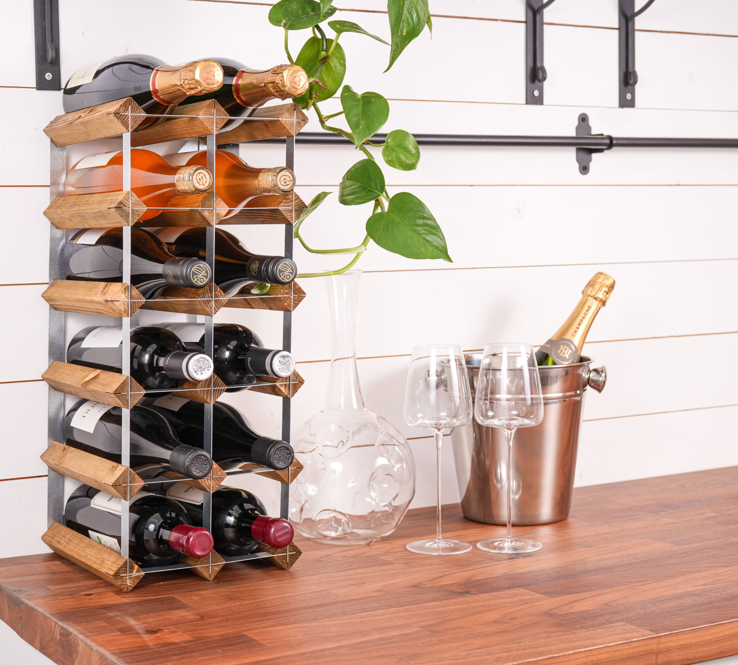 Påbyggnadsbart vinställ för 15 flaskor.